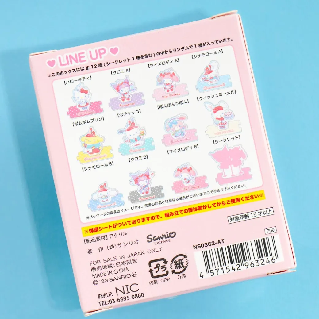 Collect all these kawaii acrylic stands! Each box comes with one stand that features an illustration of a Sanrio cutie in a cafe uniform with their names on the stand. You can use it as a study companion for your desk!