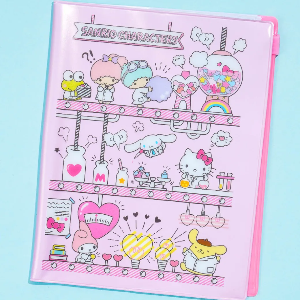 Protect your notebook with this super cute plastic cover. It’s illustrated with Sanrio characters happily working in a candy lab! This plastic notebook cover has a sliding zip closure to help secure your notebook.