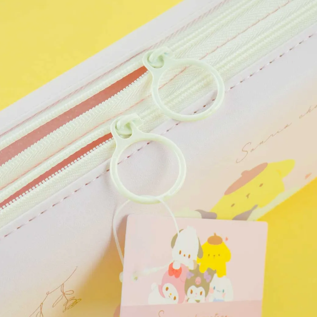Keep your markers and pencils organized by using this kawaii pouch! It has two separate zippered sections with super cute prints of popular Sanrio Characters like Pochacco, Pompompurin, My Melody, and more.