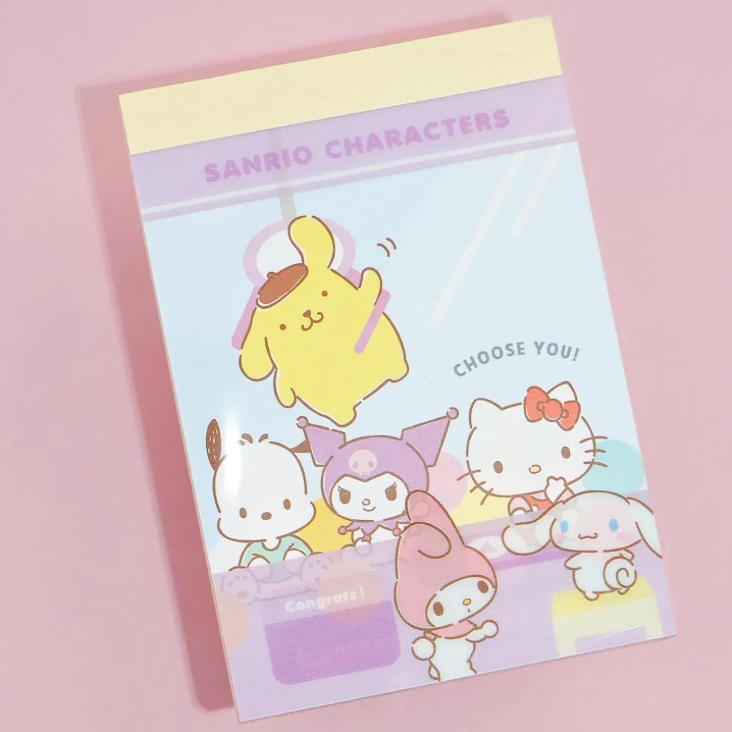 Write your short messages on this kawaii mini memo pad! It showcases cute illustrations of Sanrio Characters in an arcade crane game.