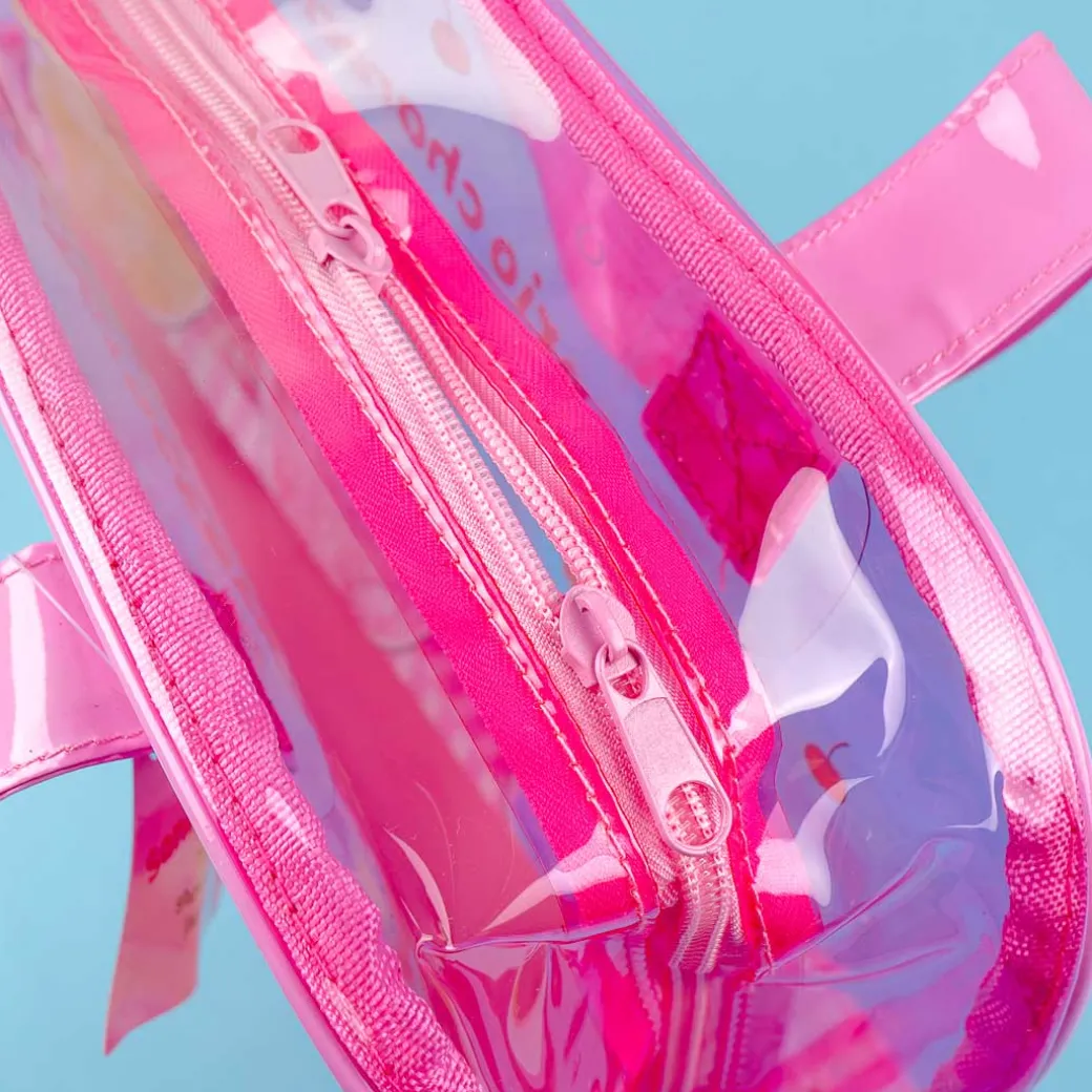 Take this super kawaii Boston bag when running errands! It’s decorated with cute and colorful illustrations of popular Sanrio Characters on top of cream soda glasses. This bag is also transparent, so you can easily the contents inside!