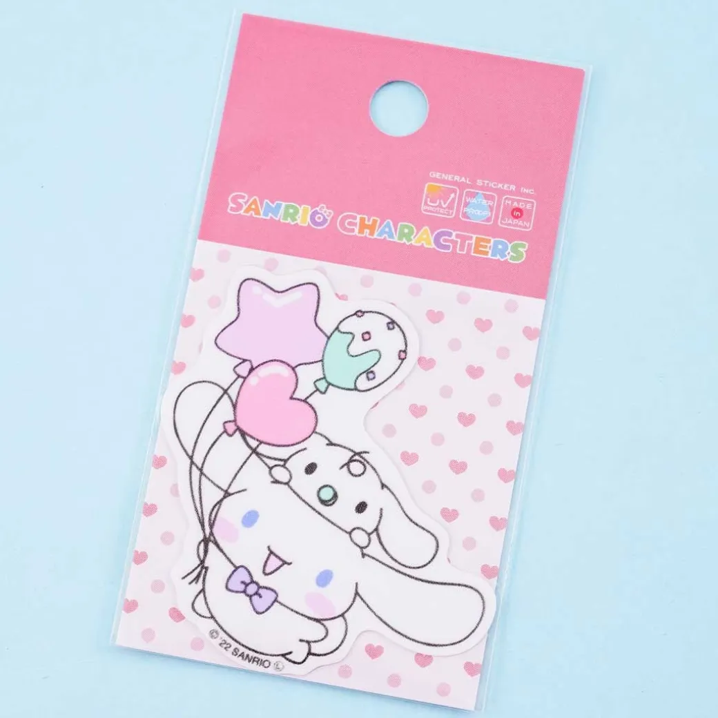 - A die-cut and easy-to-peel sticker featuring Cinnamoroll, Milk, and balloons