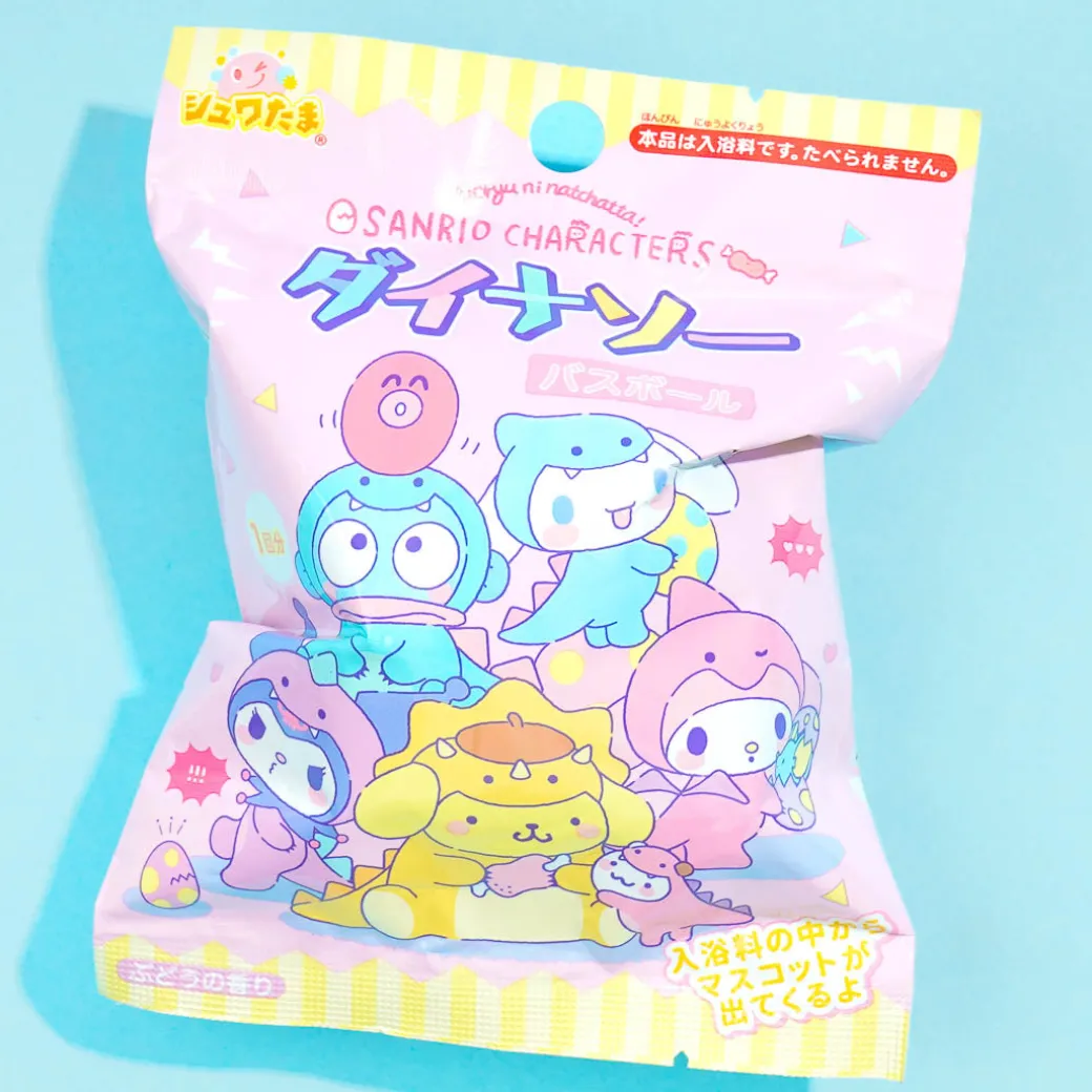 - Includes: 1 x grape-scented bath bomb and 1 x surprise mini Sanrio Characters dino figure
