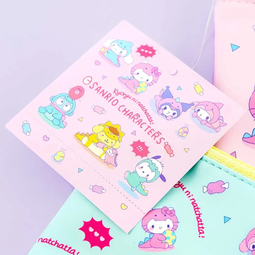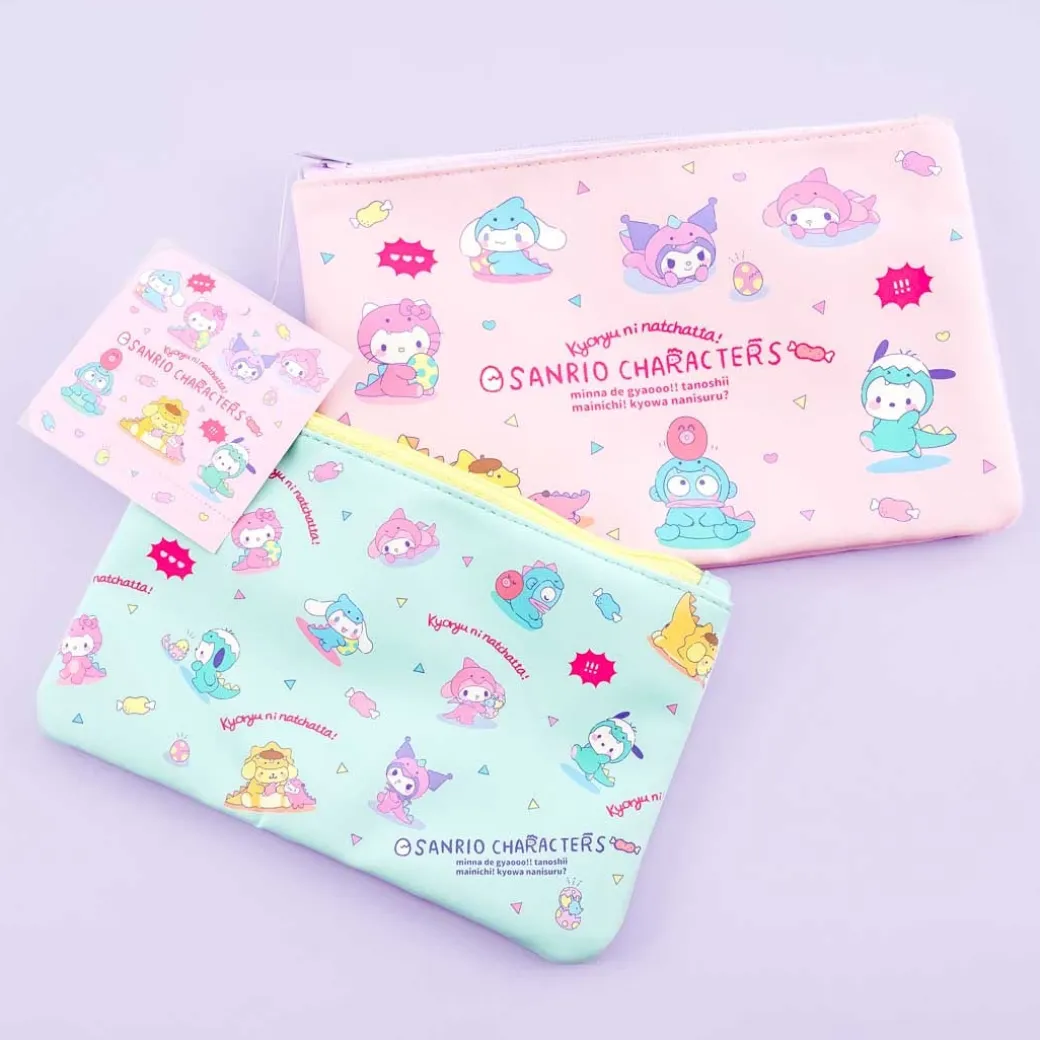 - A set of super cute pouches illustrated with prints of Sanrio characters in dinosaur costumes