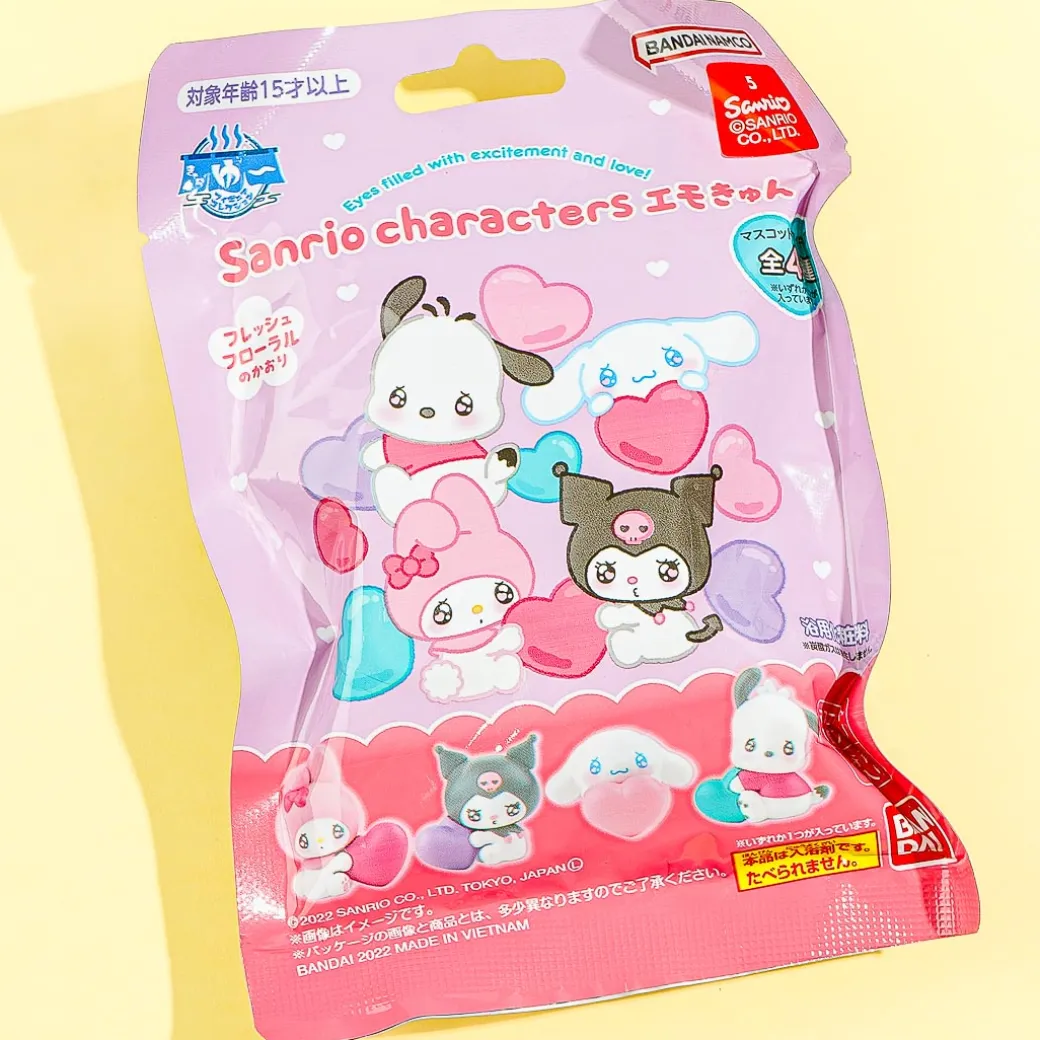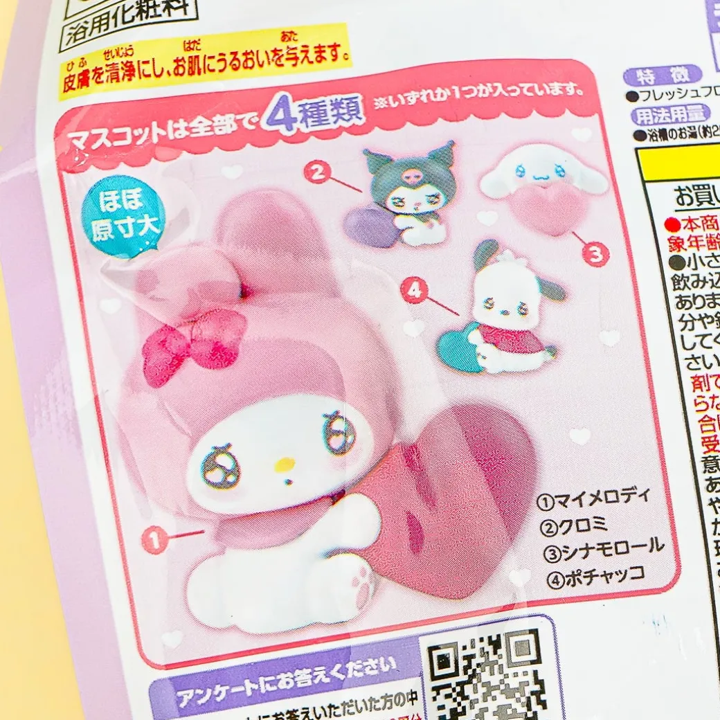 Have a relaxing bath using this bath salt with a fresh floral scent. It comes with a surprise toy featuring Sanrio Characters holding a heart. There are four designs to collect!