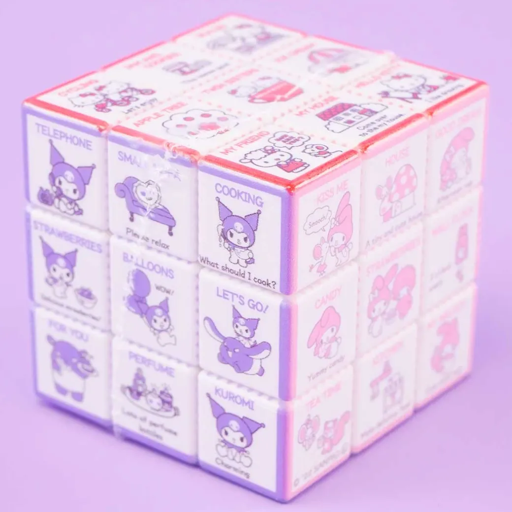 - A kawaii Rubik’s cube illustrated with Sanrio characters doing everyday things
