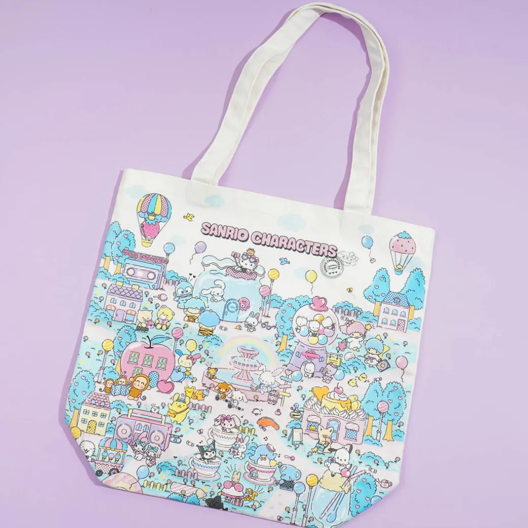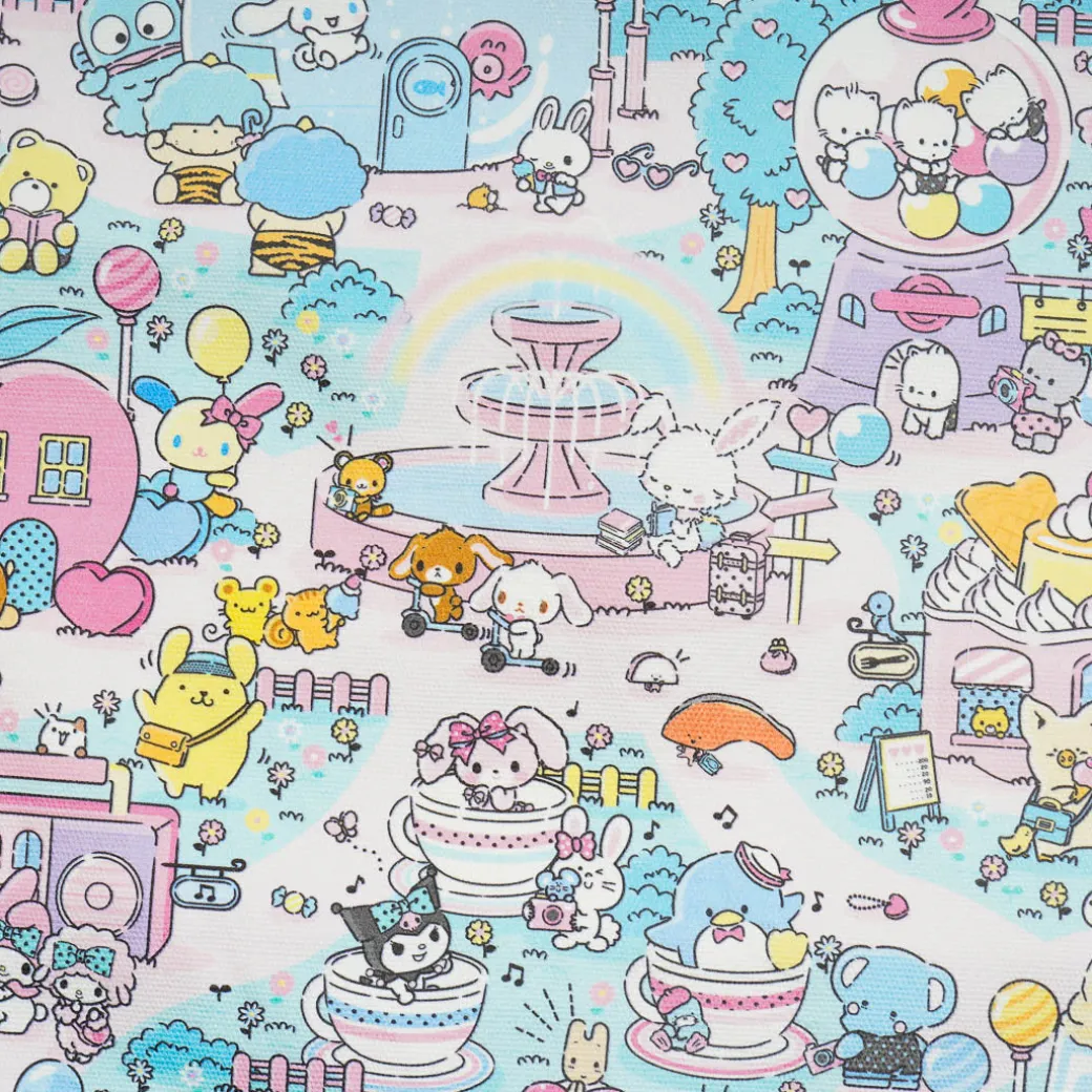 Carry your essentials in style with this cute tote bag! It features prints of Sanrio Characters in a fantasy world. This bag can easily fit an A4 clear file and has an open hanging pocket inside for extra convenience.