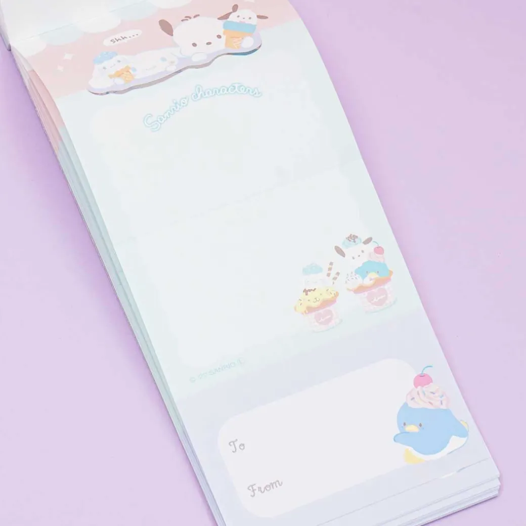 - A kawaii memo pad illustrated with Sanrio characters playing with one another