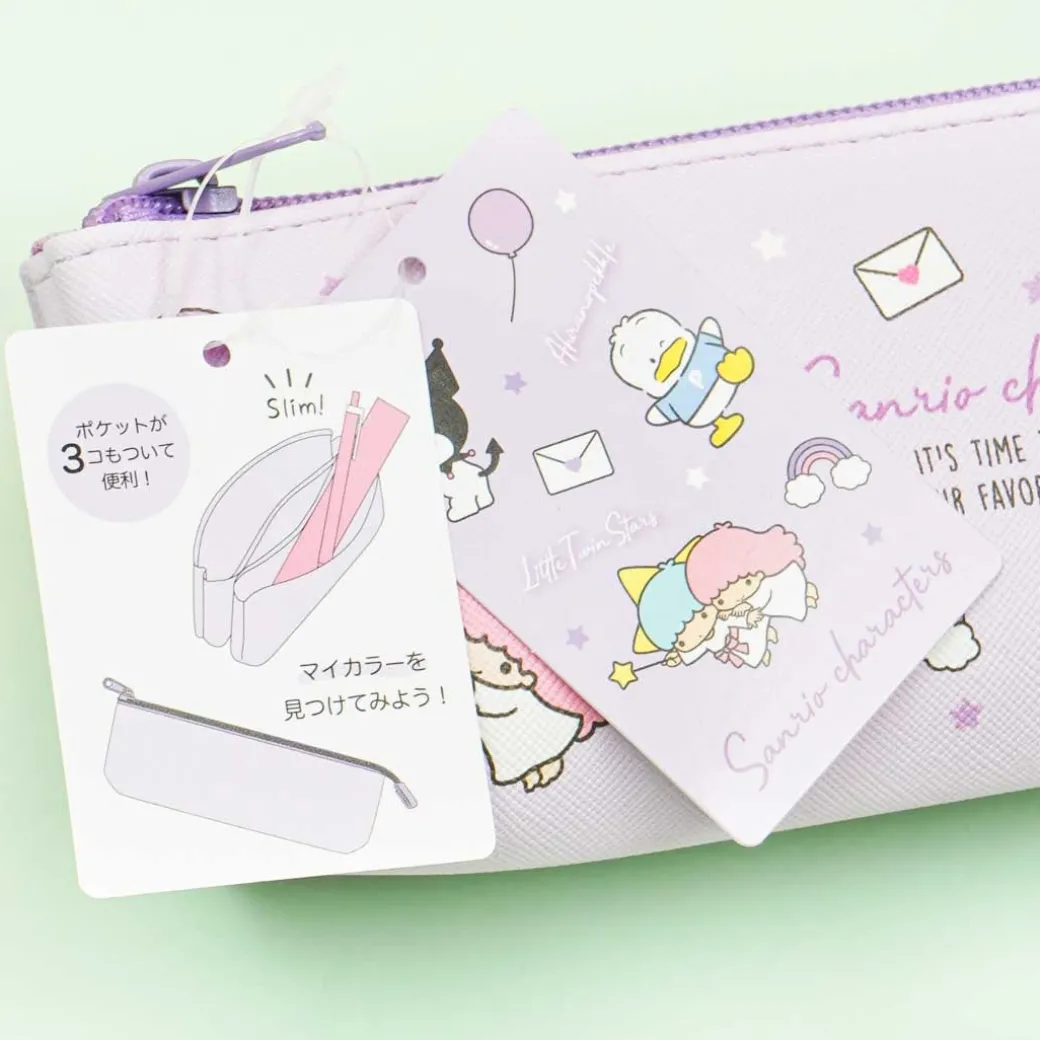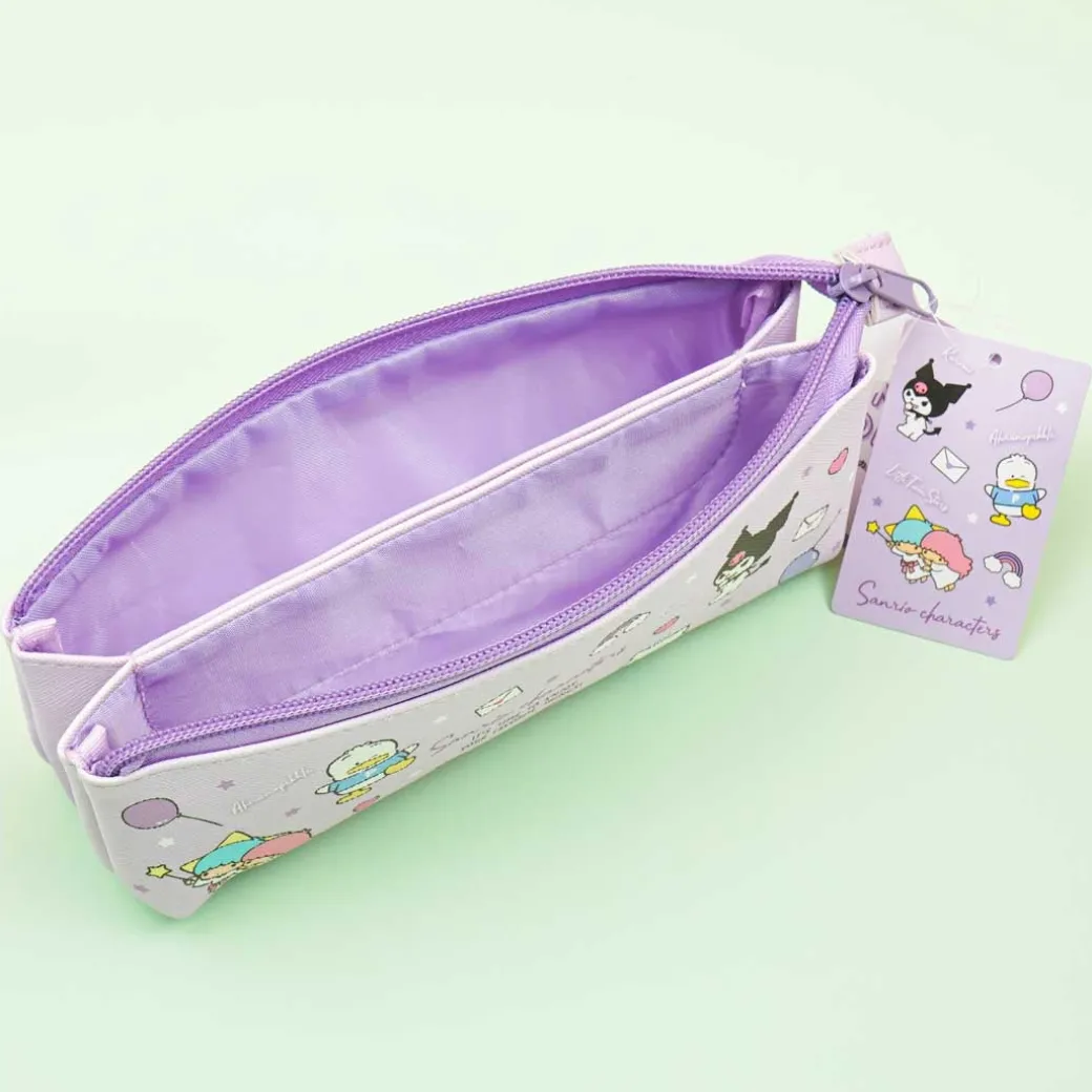 - A pencil case with illustrations of Sanrio characters having a fun time