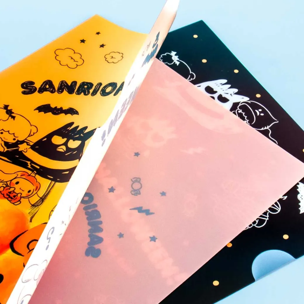 - A super cute A4 file folder set featuring Sanrio characters dressed for Halloween