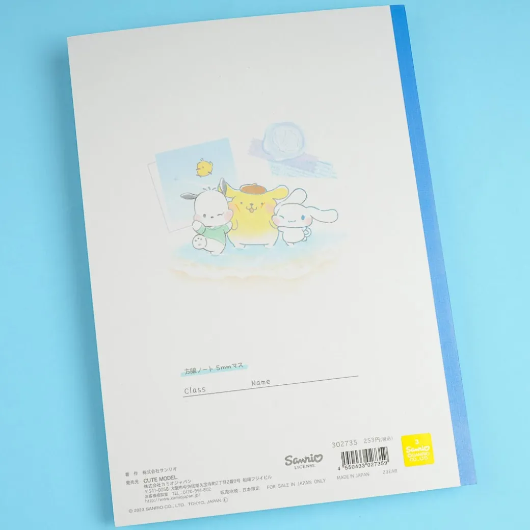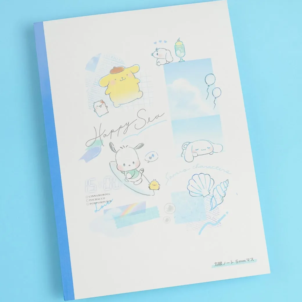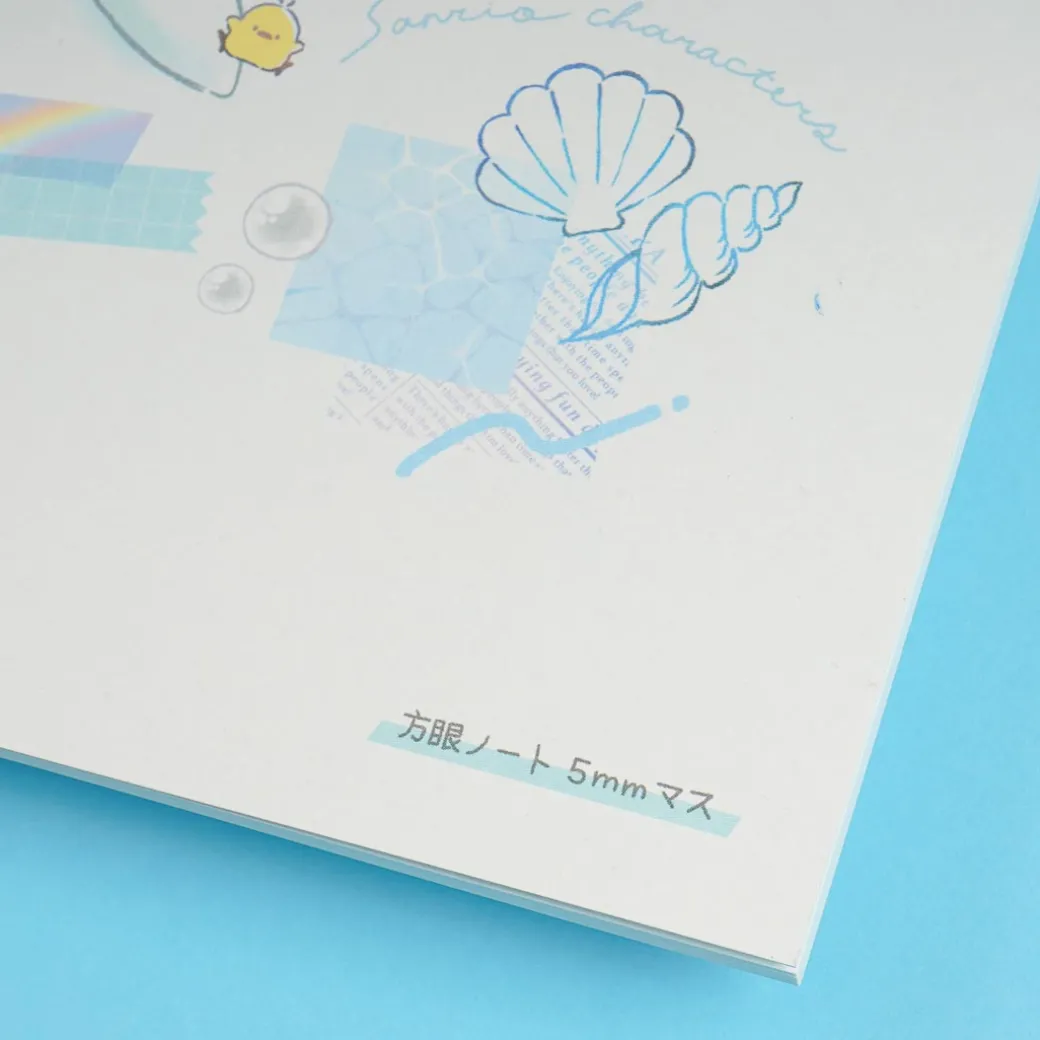 This kawaii notebook features light illustrations of Sanrio Characters having fun at the sea. It has grid-lined pages that are perfect for practicing your drawing skills.