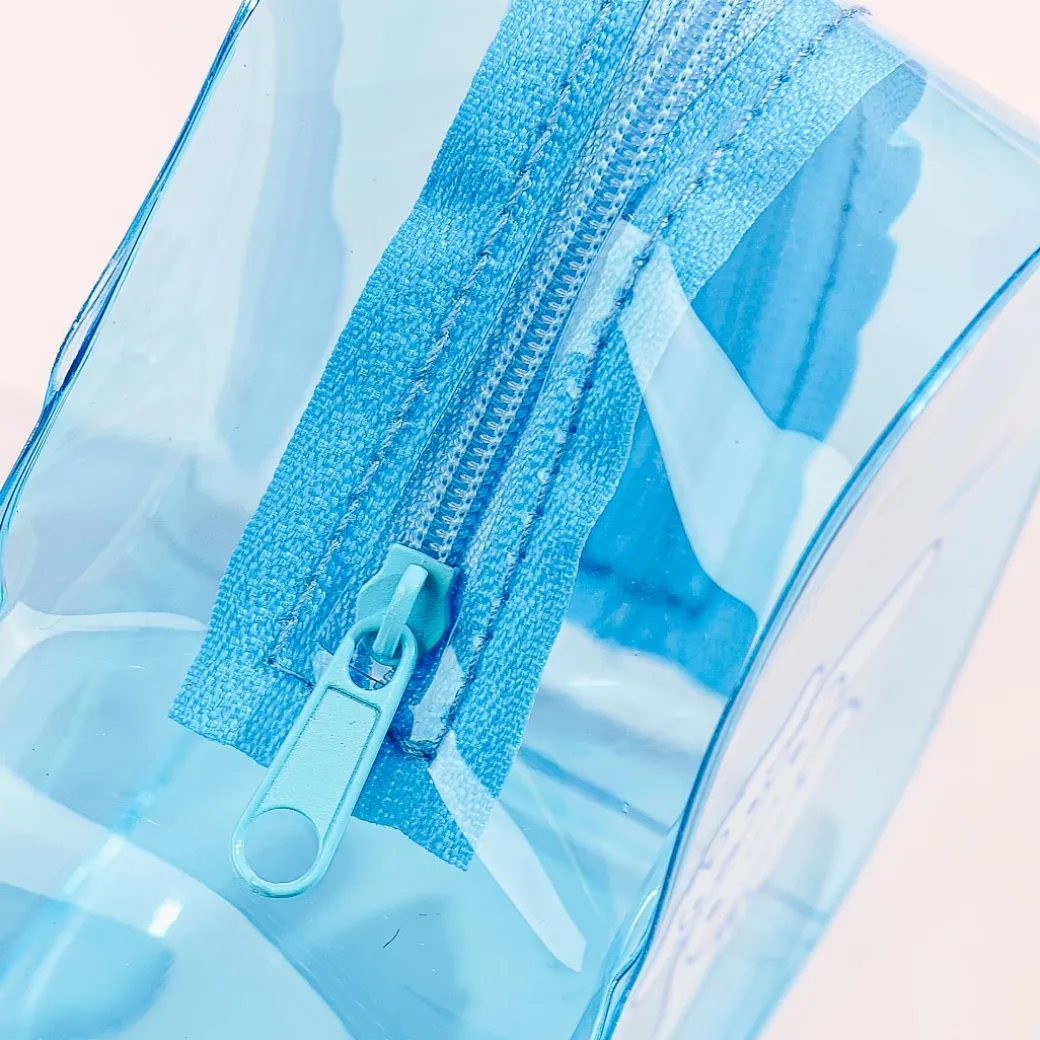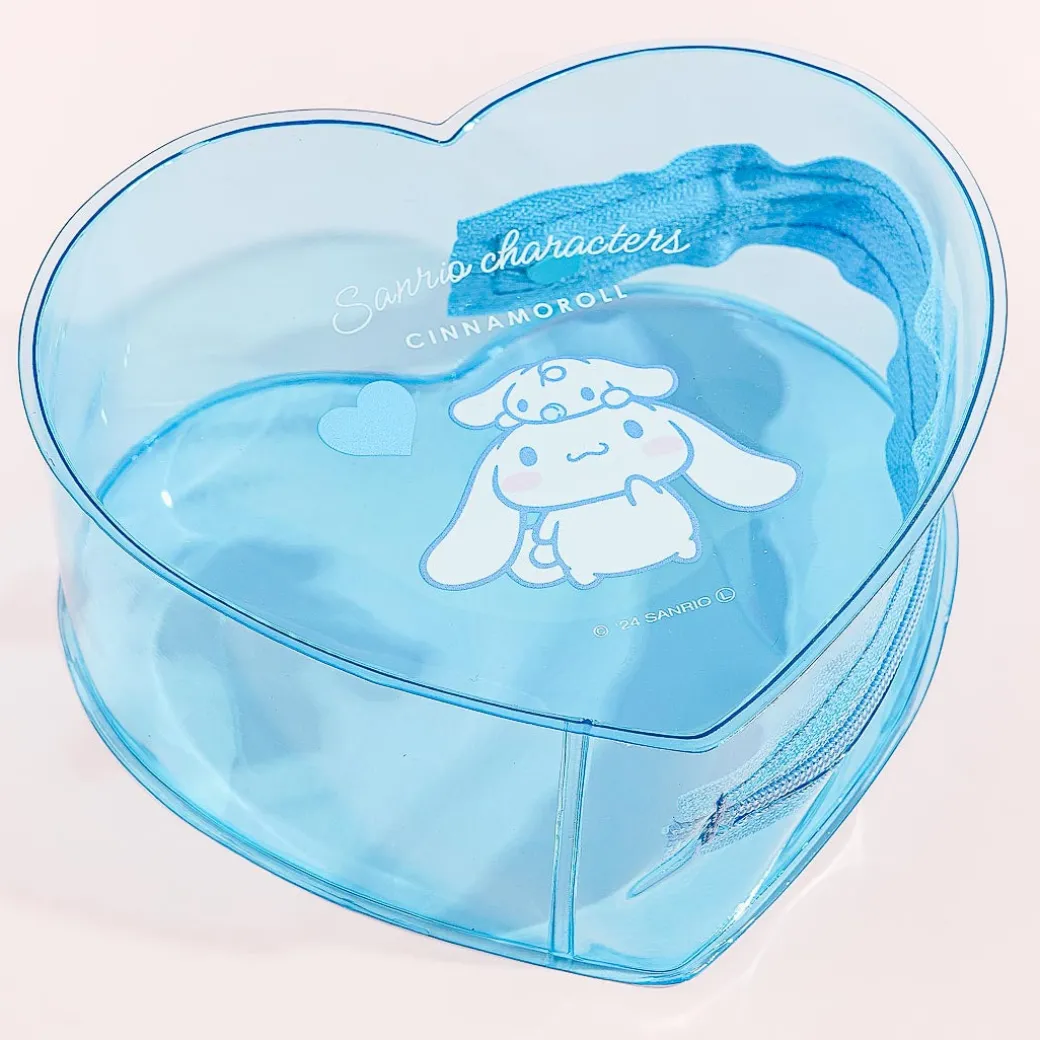 This kawaii heart-shaped pouch is illustrated with Cinnamoroll hanging out with his friend Milk! You can use it to store small makeup items and charms. It’s made from clear plastic material so you can see everything inside.