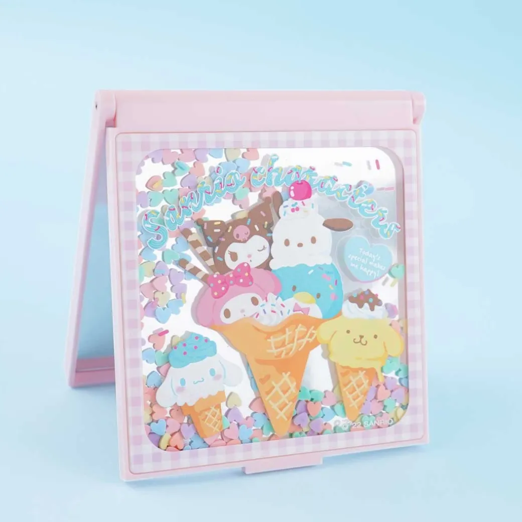 - A cute folding vanity mirror featuring Sanrio Characters on a huge ice cream
