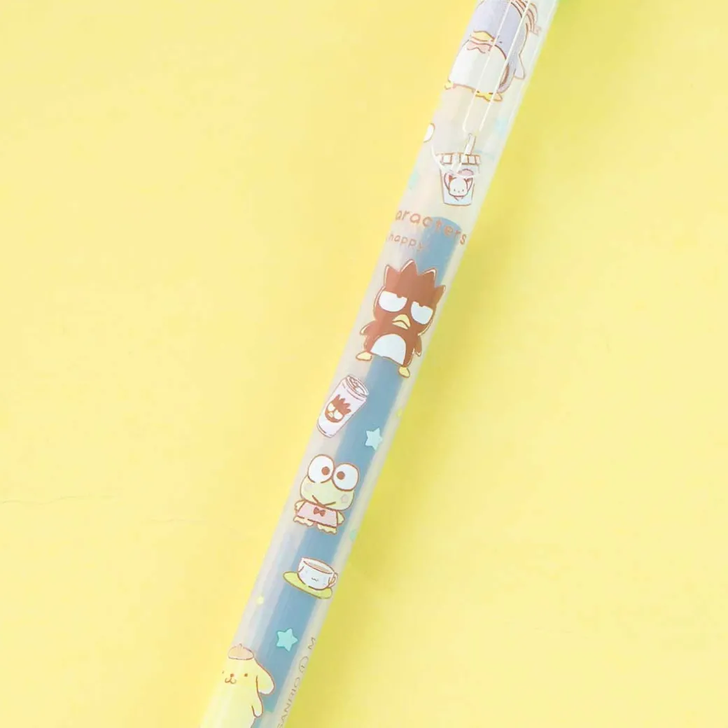 Write lovely poems or songs using this super cute gel pen! Its semi-transparent pen body has kawaii illustrations of Sanrio Characters all over! The pen also has a green-colored ink refill underneath and can be clicked on the top to reveal and retract the pen tip!
