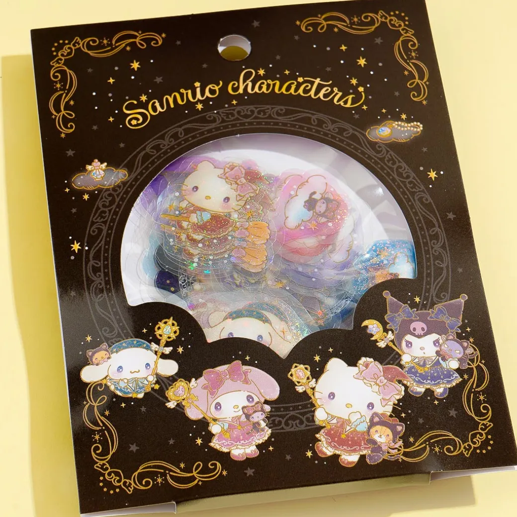 Use these kawaii stickers to decorate your notebooks and letters! The translucent and glittery design features Sanrio Characters looking like magicians.