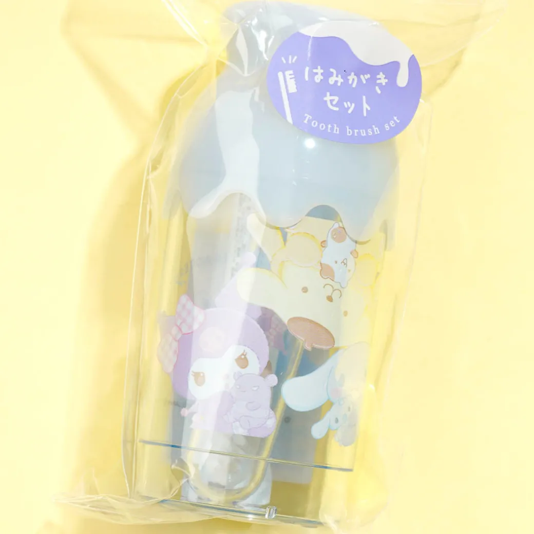 Bring along this kawaii toothbrush set when you head to the slumber party! It has a milk bottle-shaped case featuring prints of Sanrio characters like Kuromi, Pompompurin, and Cinnamoroll. This toothbrush set includes a toothbrush, a tube of toothpaste, and a case with cup.