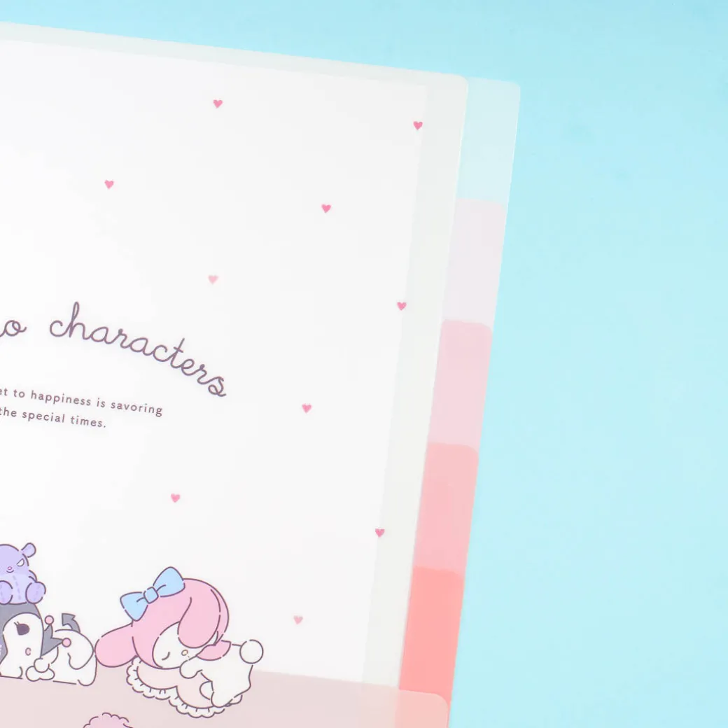 Organize your receipts, photos, letters, and other important documents inside this kawaii index folder! It has super cute prints of popular Sanrio Characters with their BFFs all napping together! The handy clear file has five separate pockets for easier sorting.