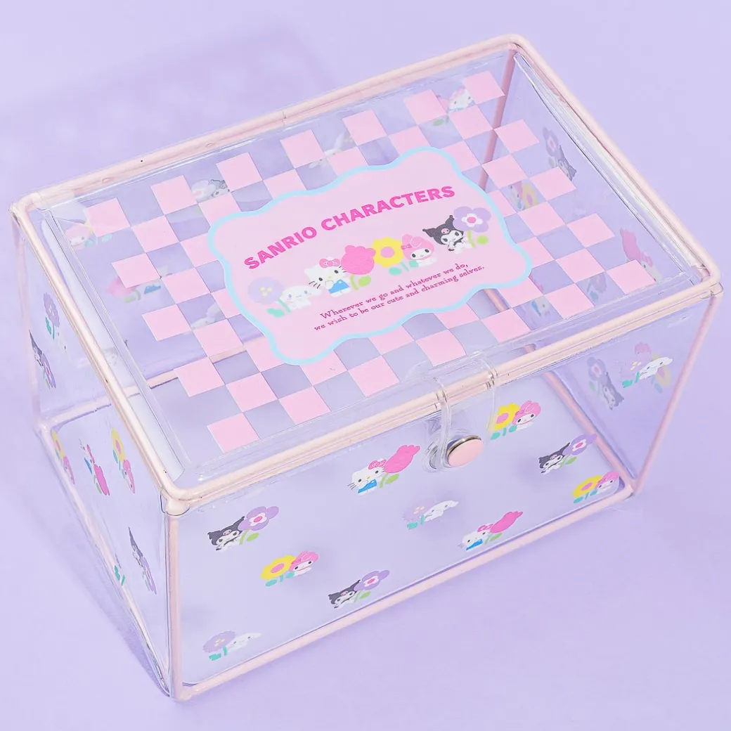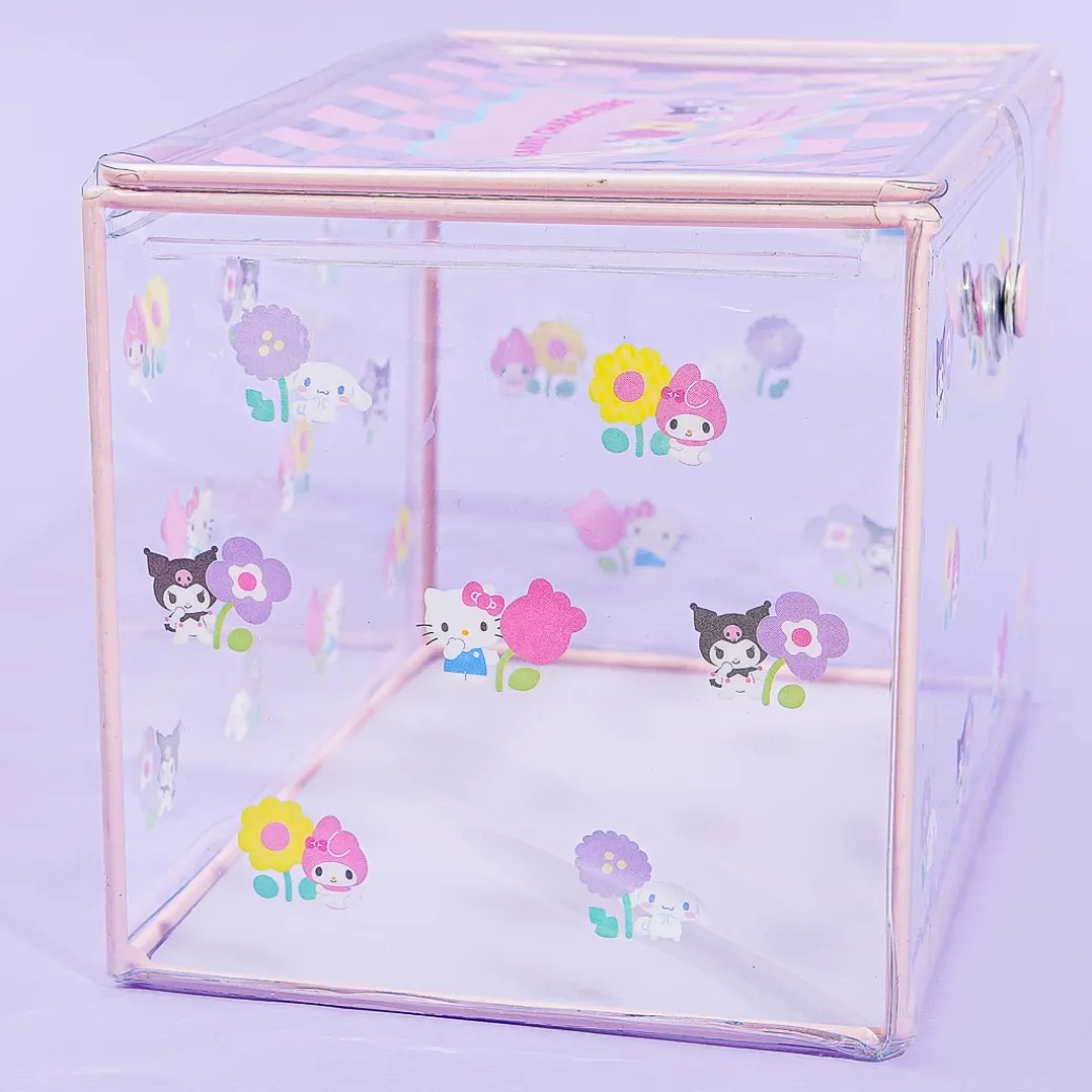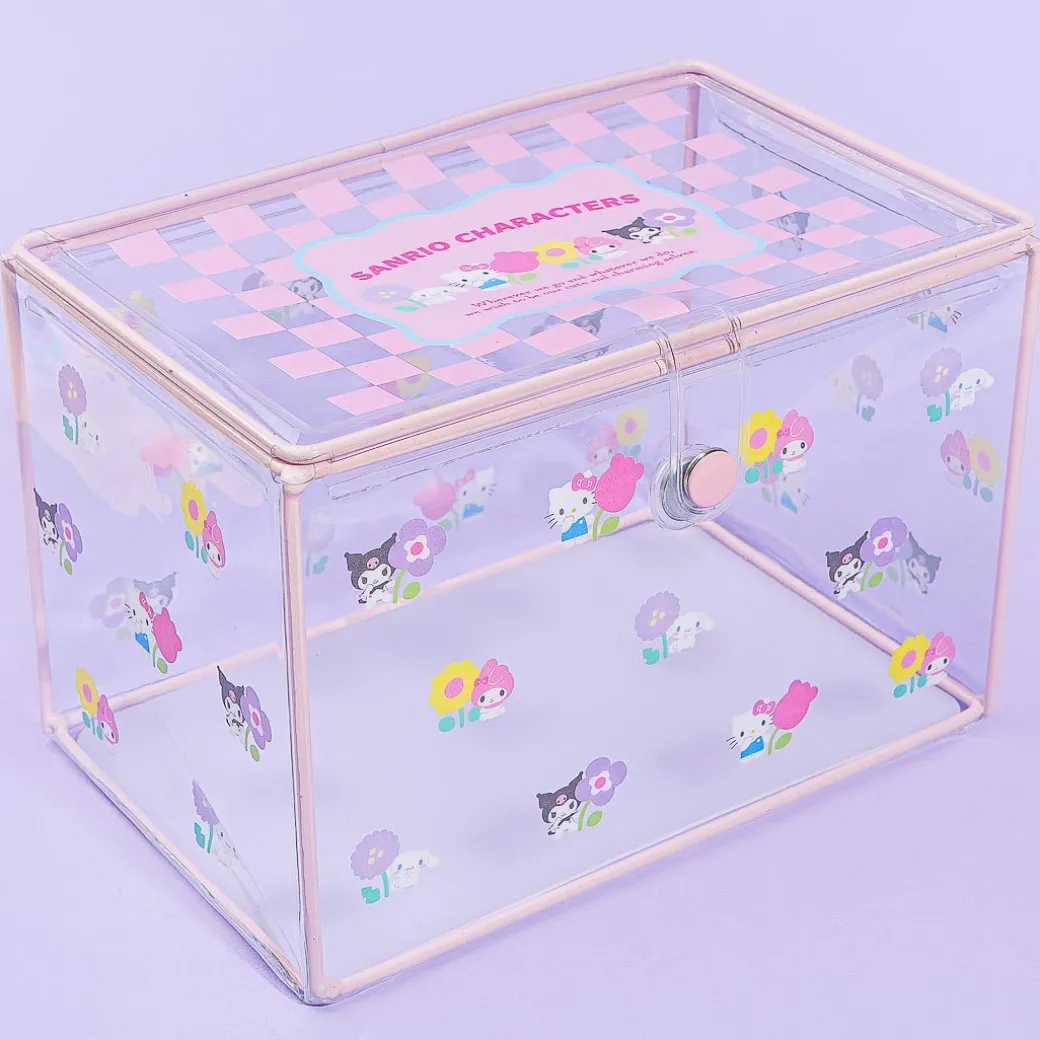 This super cute storage box is filled with prints of Sanrio Characters holding pretty flowers! It also has a kawaii checkered pattern design on top. This box is made of clear PVC material so you can easily what’s inside, and it’s the perfect size for storing small items such as stationery and makeup tools!