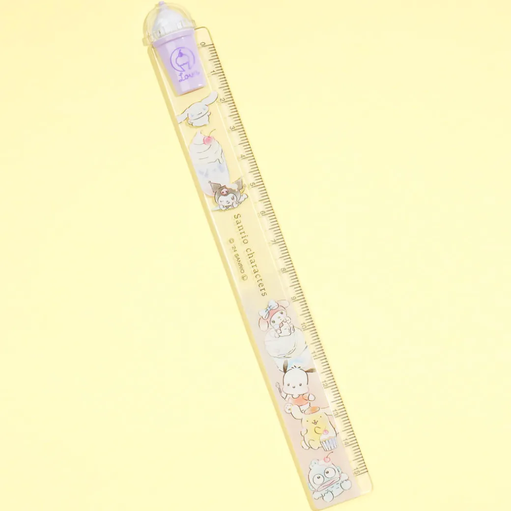 Enjoy doing your art project using this kawaii ruler! It features prints of Sanrio Characters and delicious-looking cafe drinks. It even has a 3D drink decor!