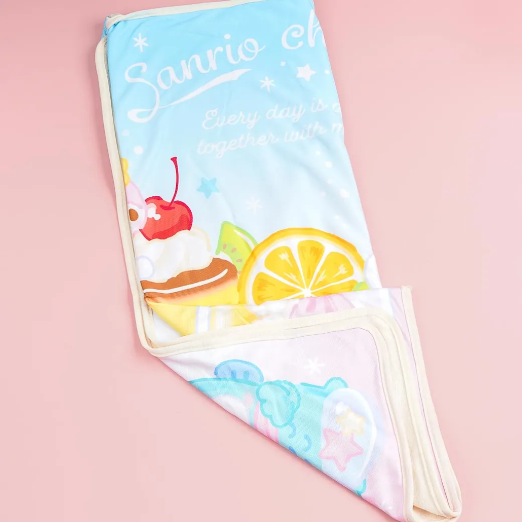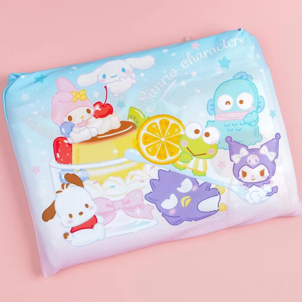 Use this kawaii breathable blanket during your next sleepover! It’s illustrated with the Sanrio cuties and a large pudding. You can also fold the blanket into its pocket for storage.