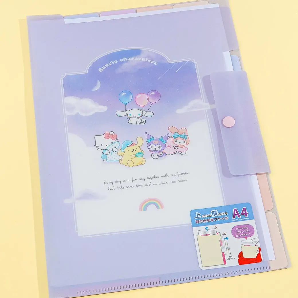 Keep your precious documents safe and dry inside this kawaii index folder with separate pockets! It has cute illustrations of popular Sanrio Characters having a relaxing night amongst the clouds.
