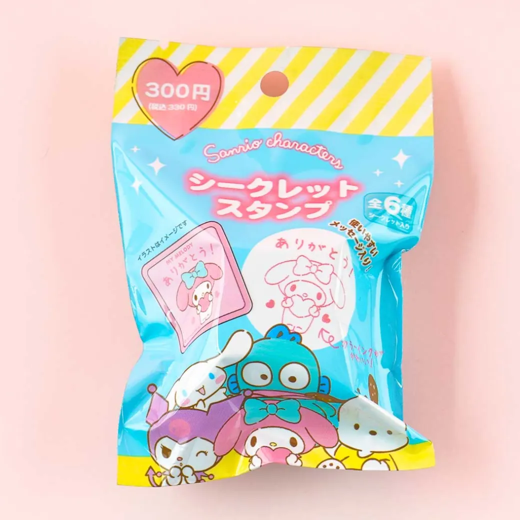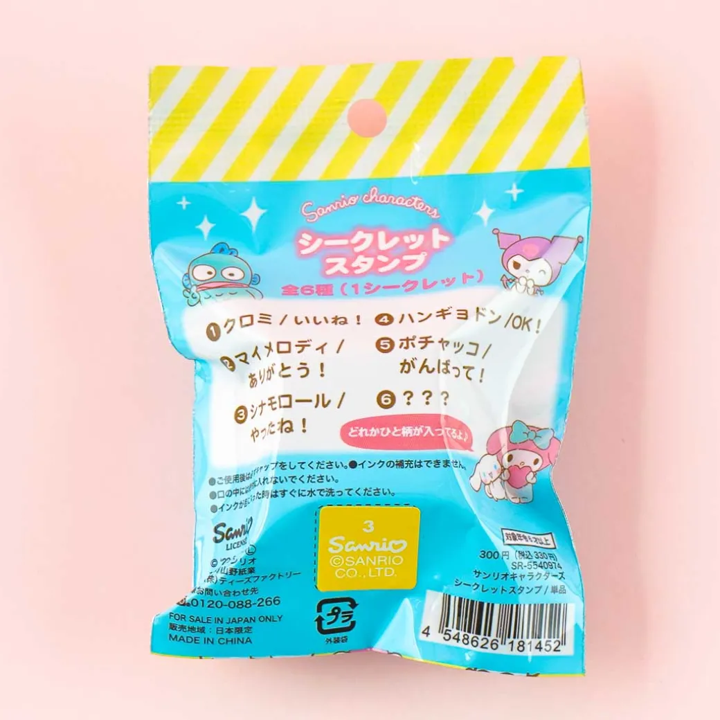 Add this super cute stamp to your arts and crafts kit! It showcases a kawaii Sanrio character. This collectible stamp comes from the Sanrio Characters secret stamp series.
