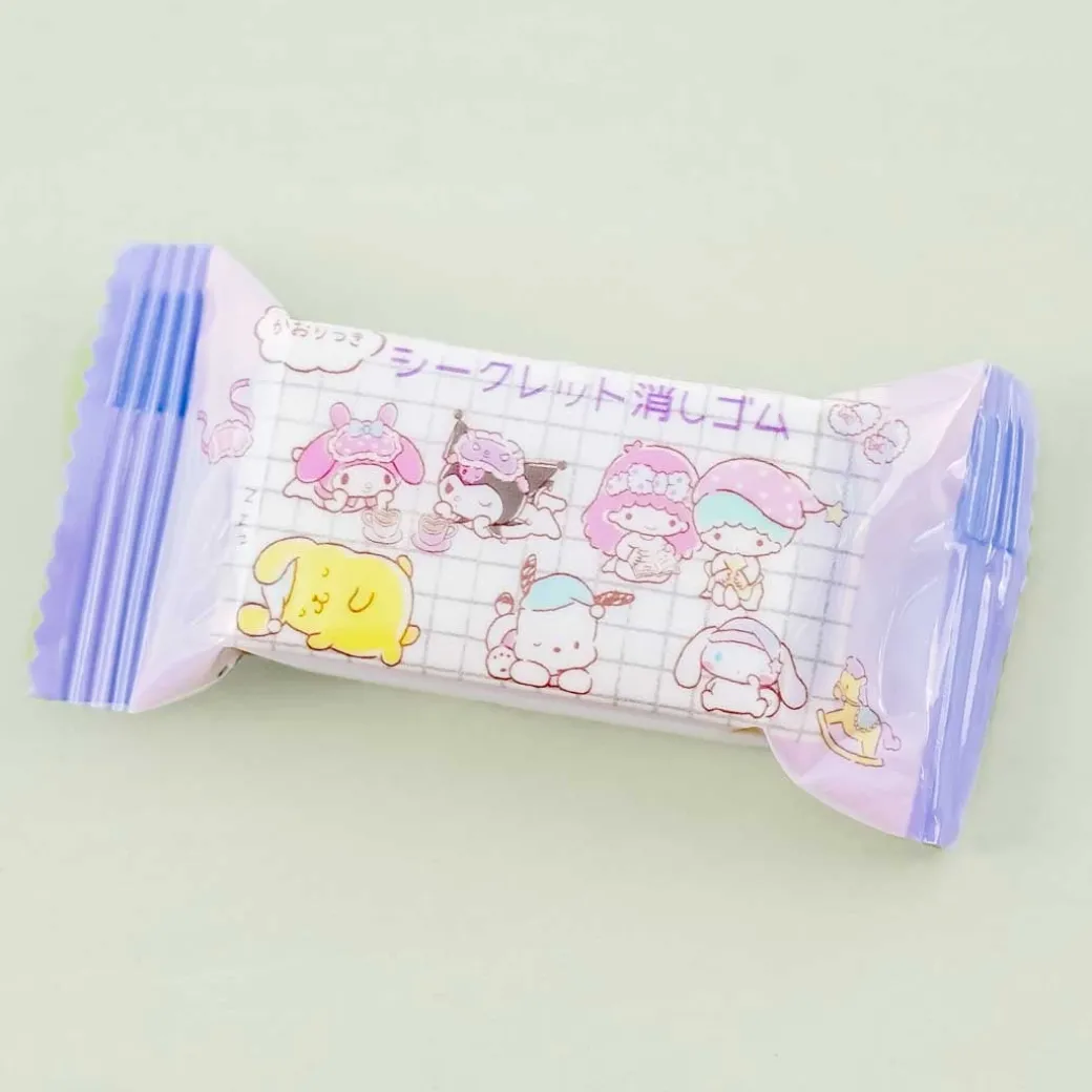 - A cute secret blind-packaged eraser in a package featuring different Sanrio characters