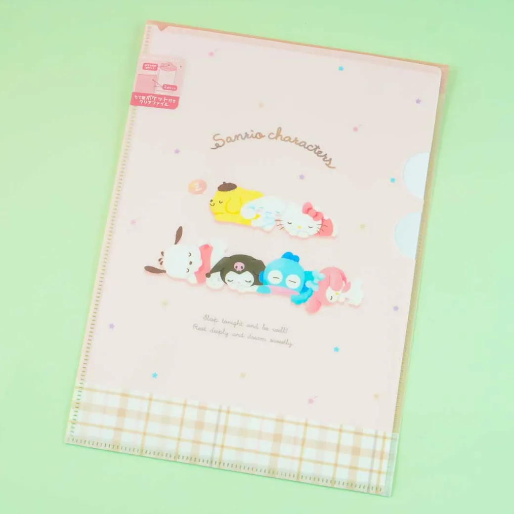 Keep your documents safe and dry by placing them inside this super cute index folder! It has illustrations of the popular Sanrio Characters sleeping peacefully together! The clear file also has a vertical pocket at the backside.