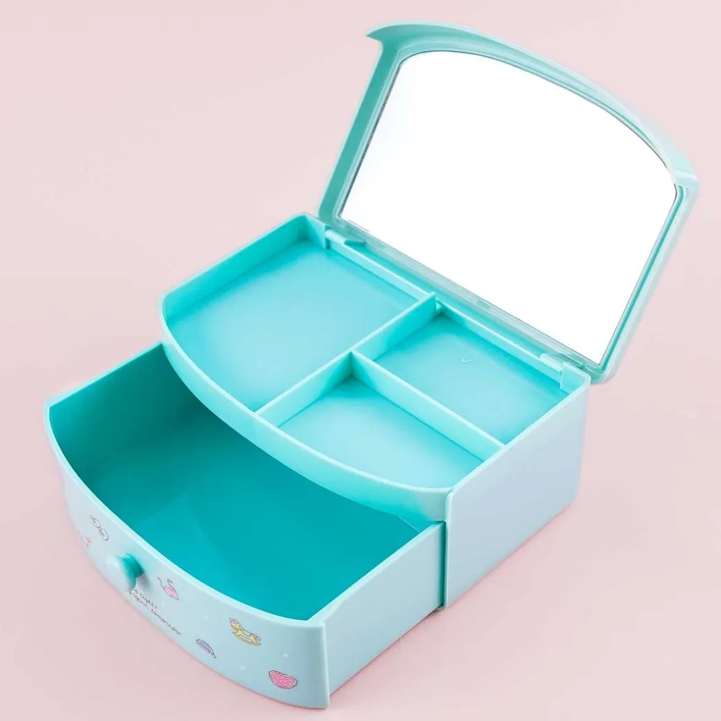 - A kawaii jewelry case printed with illustrations of Sanrio characters sleeping soundly