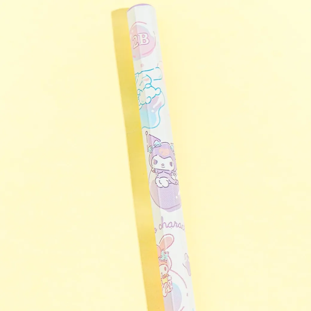 Have fun drawing landscapes or writing poems using this super kawaii pencil! It has a unique hexagonal body shape and cute illustrations of famous Sanrio Characters riding on top of soap bubbles.