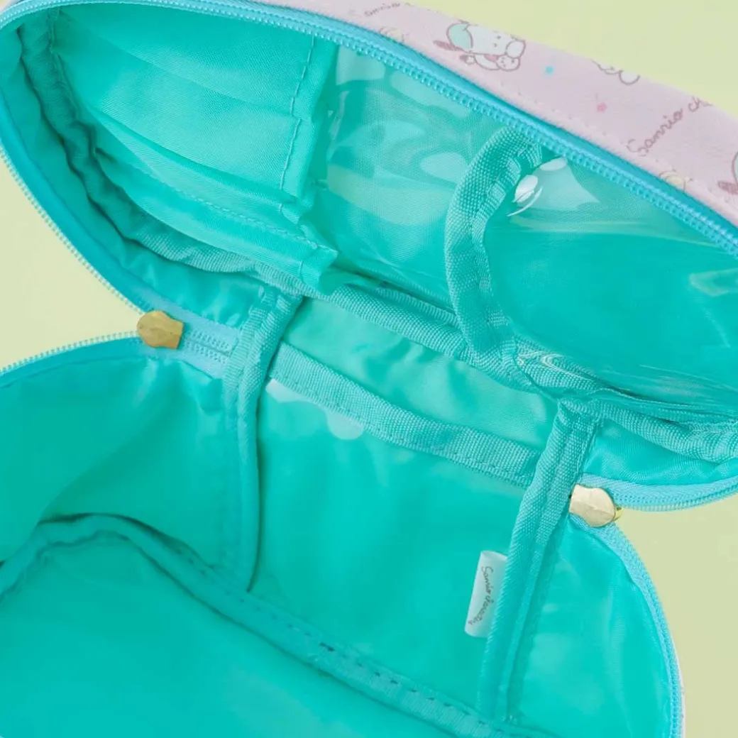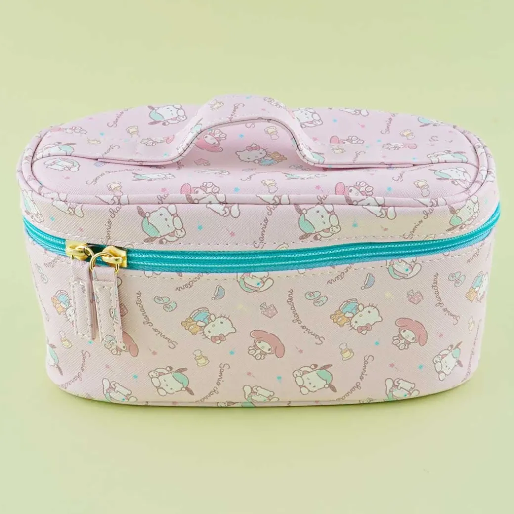 - A kawaii beauty bag with a handle and has prints of the Sanrio Characters getting ready for sleep