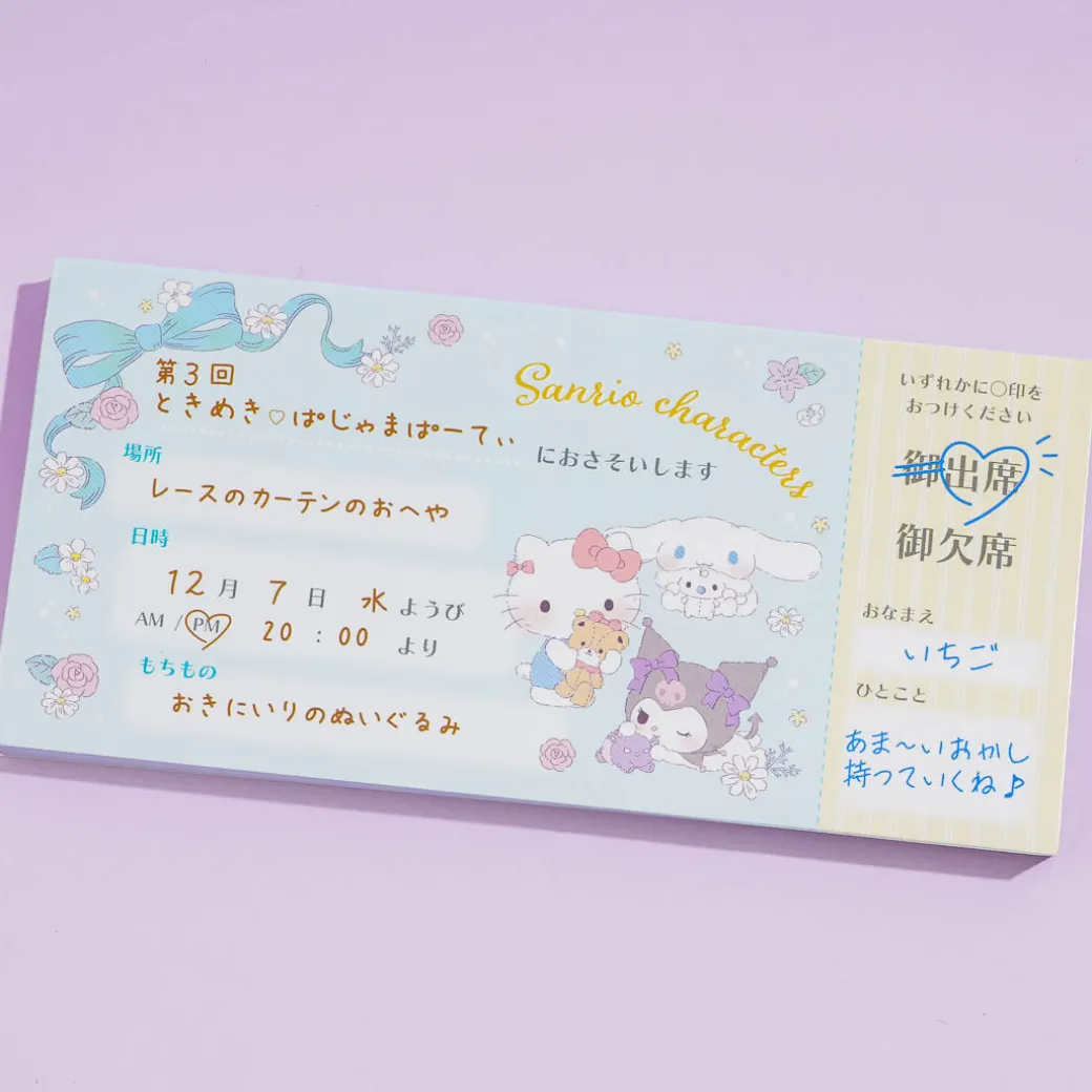 Send your invitations or sweet messages to your friends using this super cute memo pad! It looks like a real concert ticket featuring the popular Sanrio Characters – Kuromi, Cinnamoroll, and Hello Kitty.