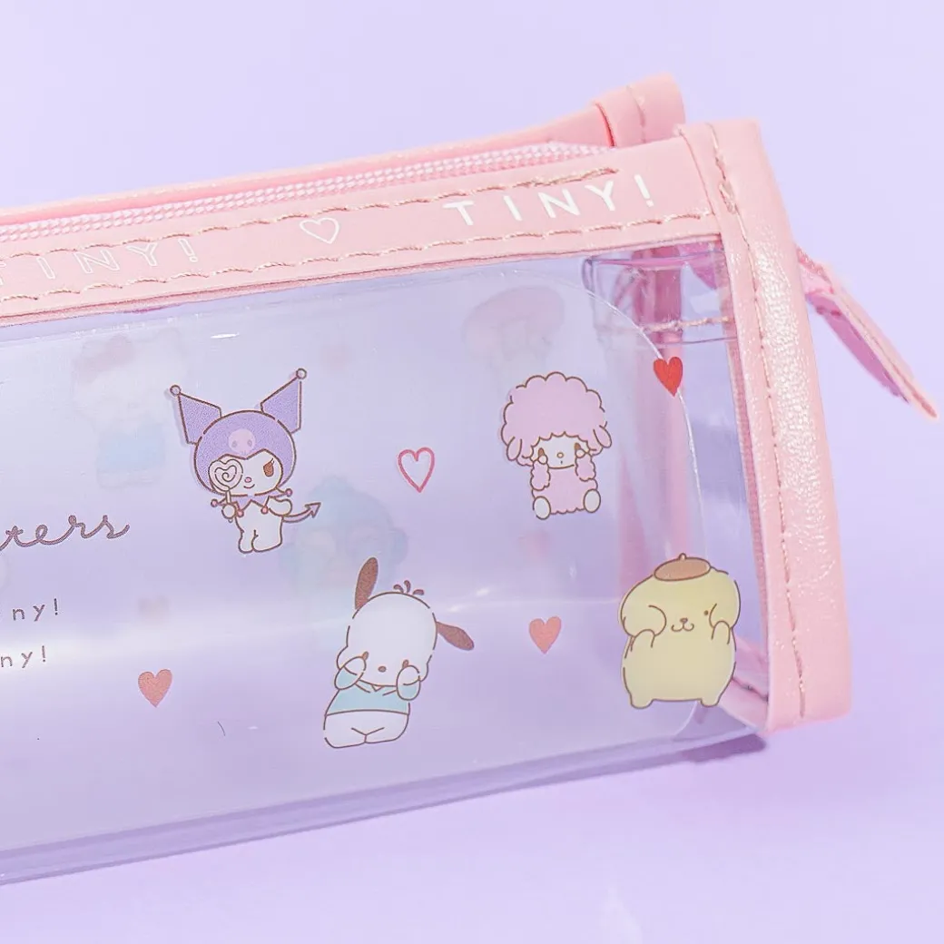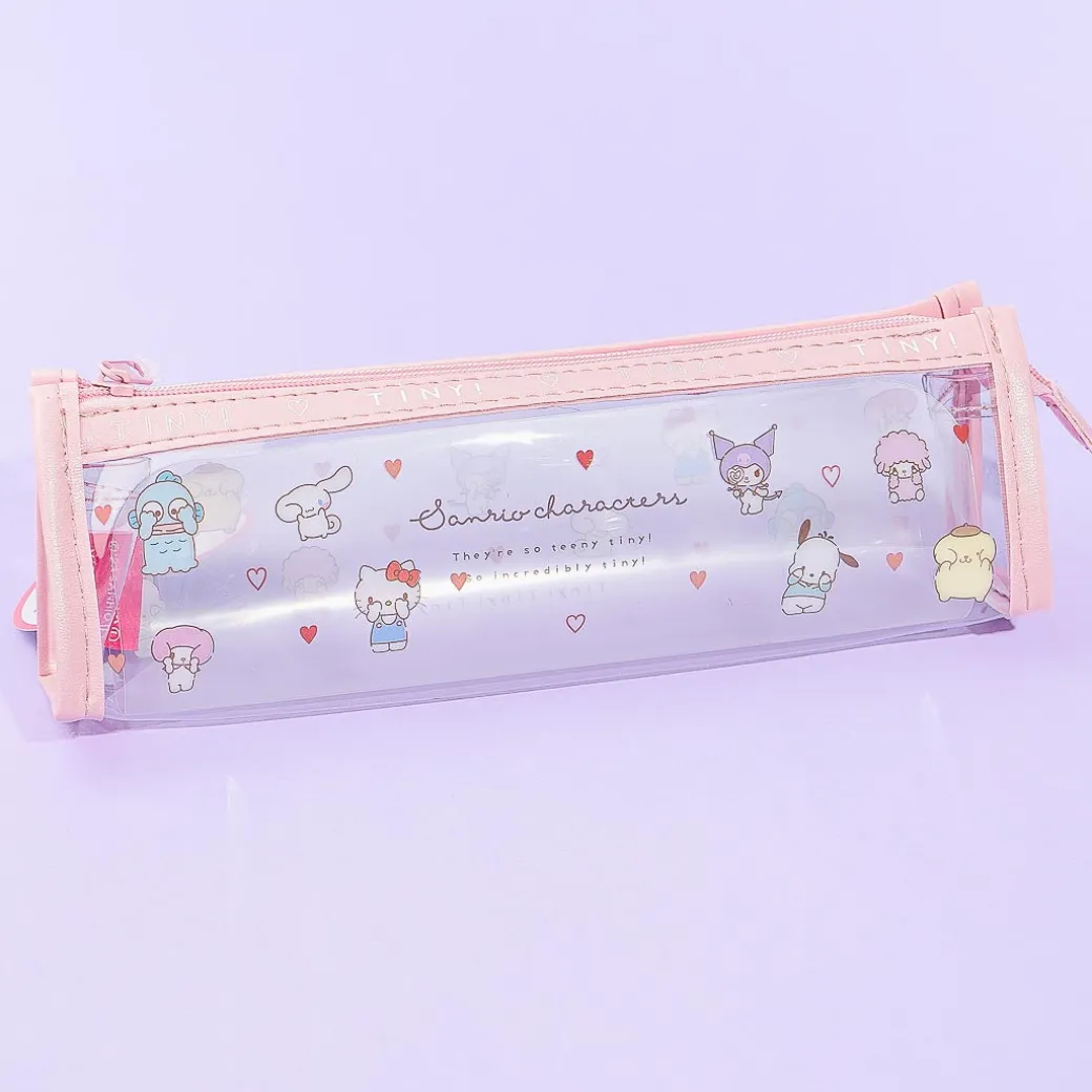 Keep your favorite pens inside this cute transparent pouch! It features kawaii illustrations of the Sanrio Characters covering their eyes while surrounded by tiny hearts.