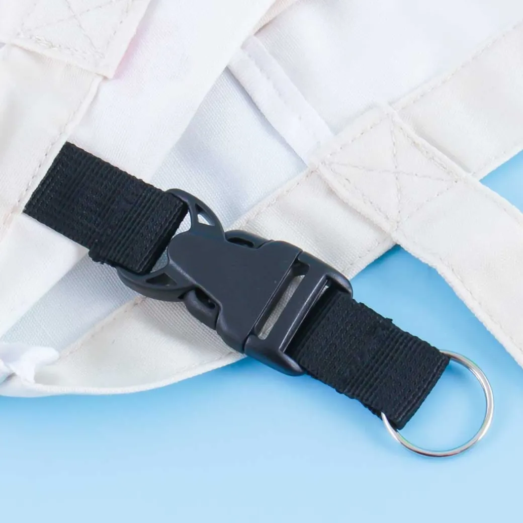 - Features an inner pocket and strap buckle with a keyring for keychains