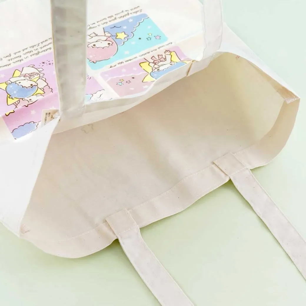 - A cute tote bag from the Sanrio Characters cotton tote bag series illustrated with the Little Twin Stars