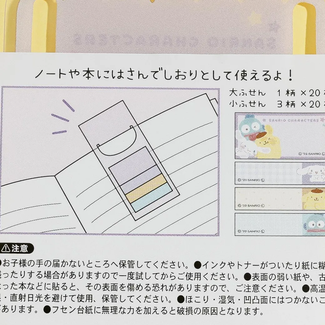 Use this set of sticky notes when studying for your exam! It features kawaii Sanrio Characters doing a cute wink. The sticky notes also come with a clear base that you can use as a bookmark.
