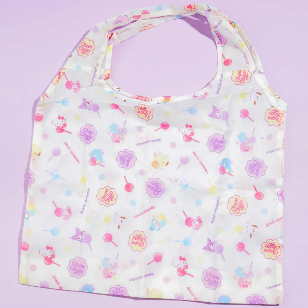 This super kawaii eco bag is decorated with colorful prints of the Sanrio Characters hugging lollipops and the famous Chupa Chups logo all over! Use this handy reusable tote whenever you shop at your neighborhood market! When not in use, it folds up to look like a tiny purse.