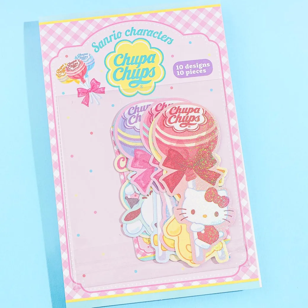 Decorate your notebook covers with these kawaii die-cut stickers! The set features prints of the popular Sanrio Characters hugging giant Chupa Chups lollipops. Add these cute seals to your stationery collection!