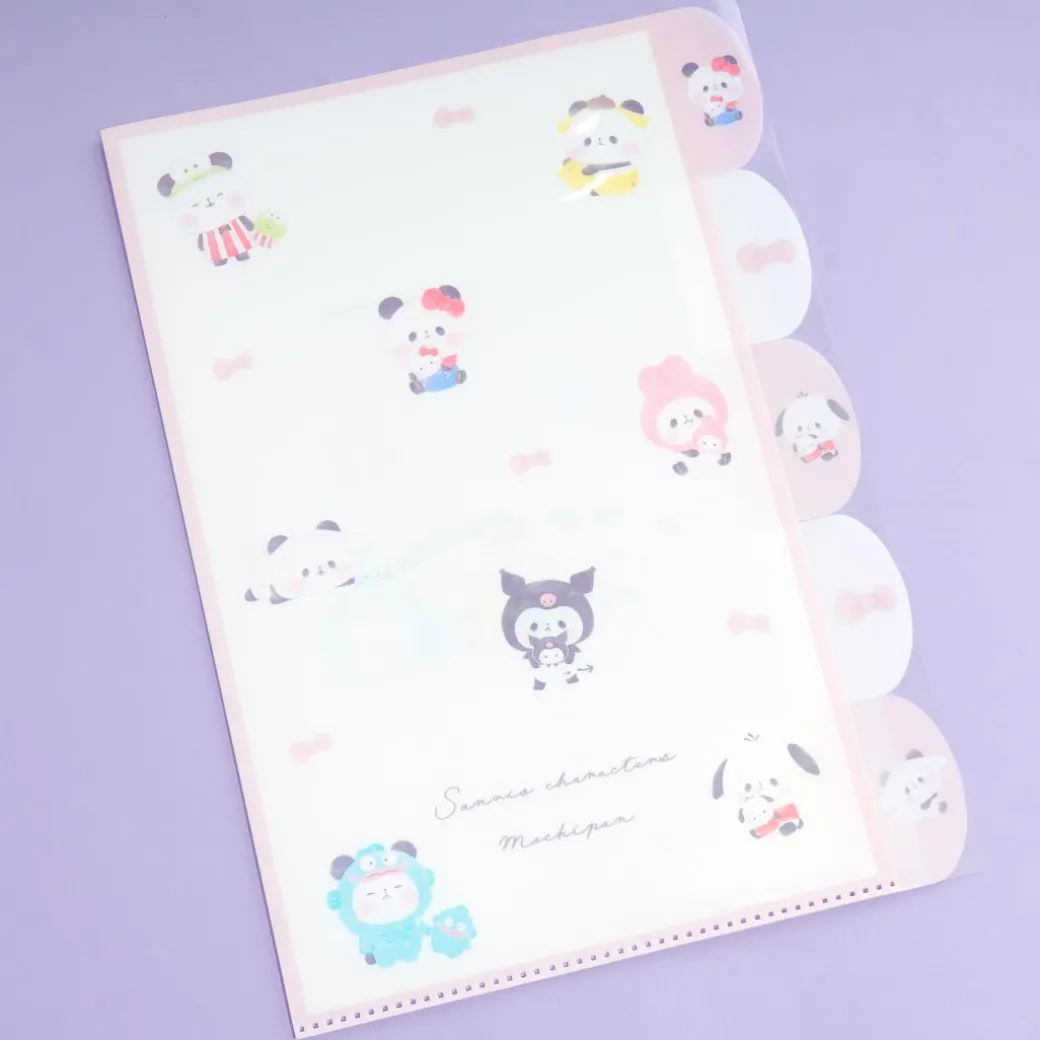 Store your files with this kawaii clear index folder! It showcases prints of cute Mochi Mochi Pandas wearing Sanrio-themed costumes. The folder comes with 5 die-cut index tabs so you organize your documents easier.