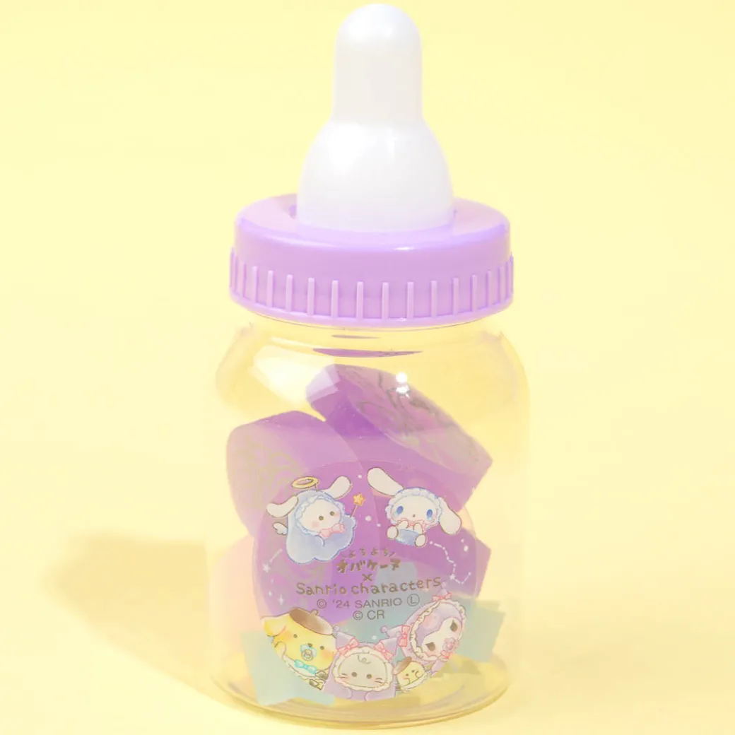 Have fun erasing your writing mistakes using this super cute set of star and heart-shaped erasers! It features prints of Sanrio Characters and Obakenu looking like babies and it comes in a baby bottle-shaped case!