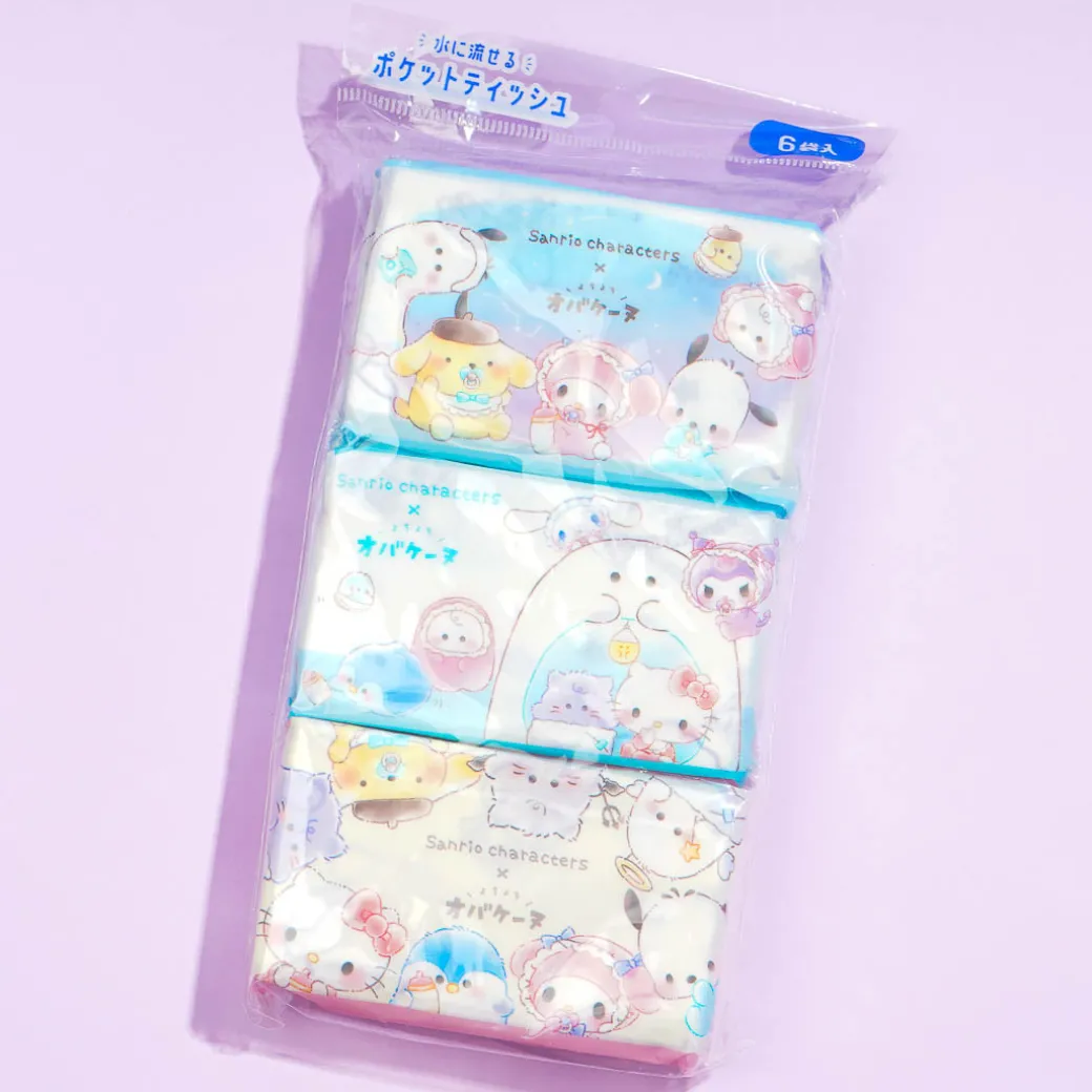 Add these packs of pocket tissue to your travel essentials! The packaging showcases prints of Sanrio Characters playing with Obakenu ghosts. This 100% pulp tissue is soft and gentle on the skin, and it’s water-soluble so you can flush it down the toilet!