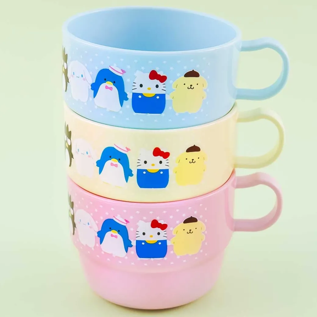 - A kawaii set of mugs illustrated with Sanrio characters resembling Potetan animal plushies