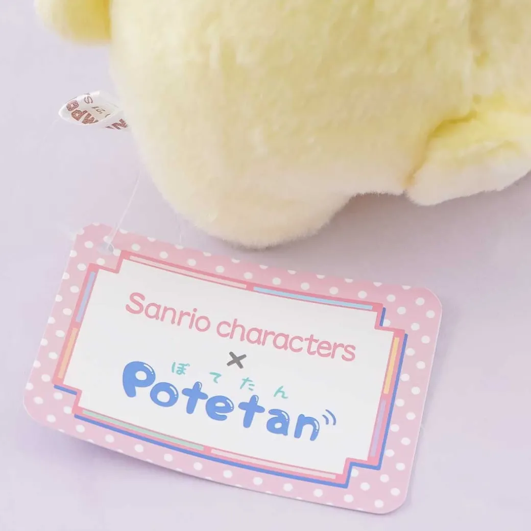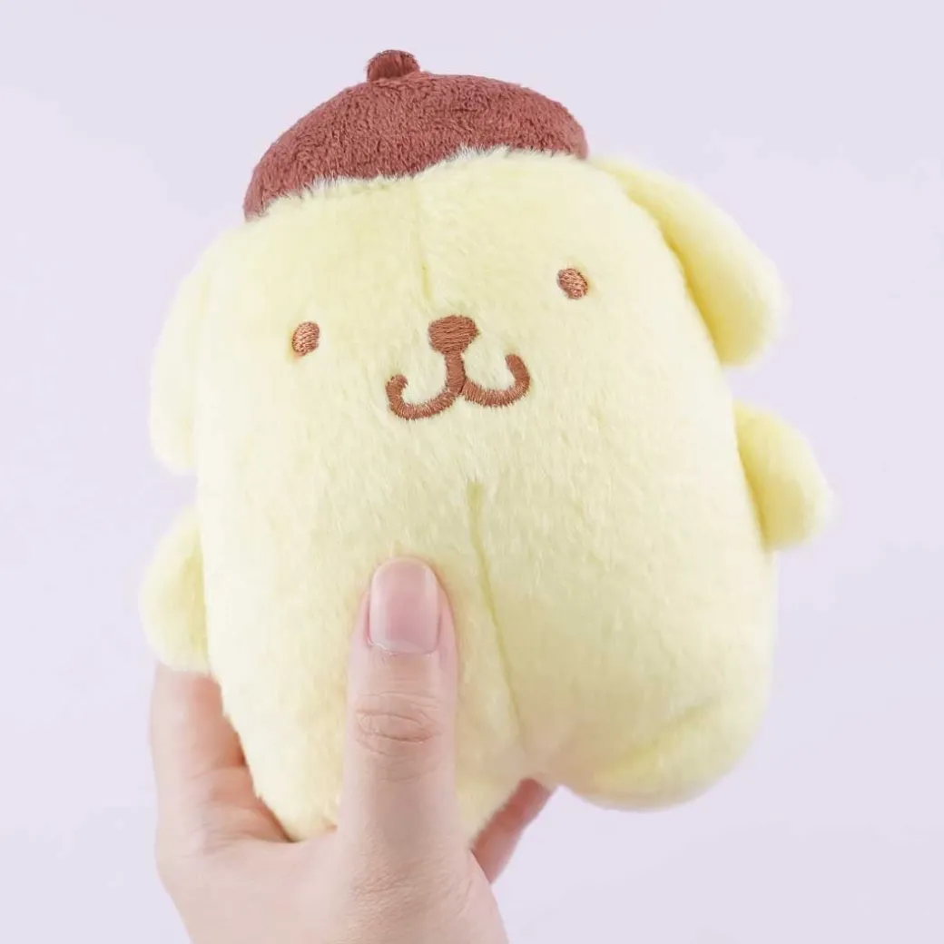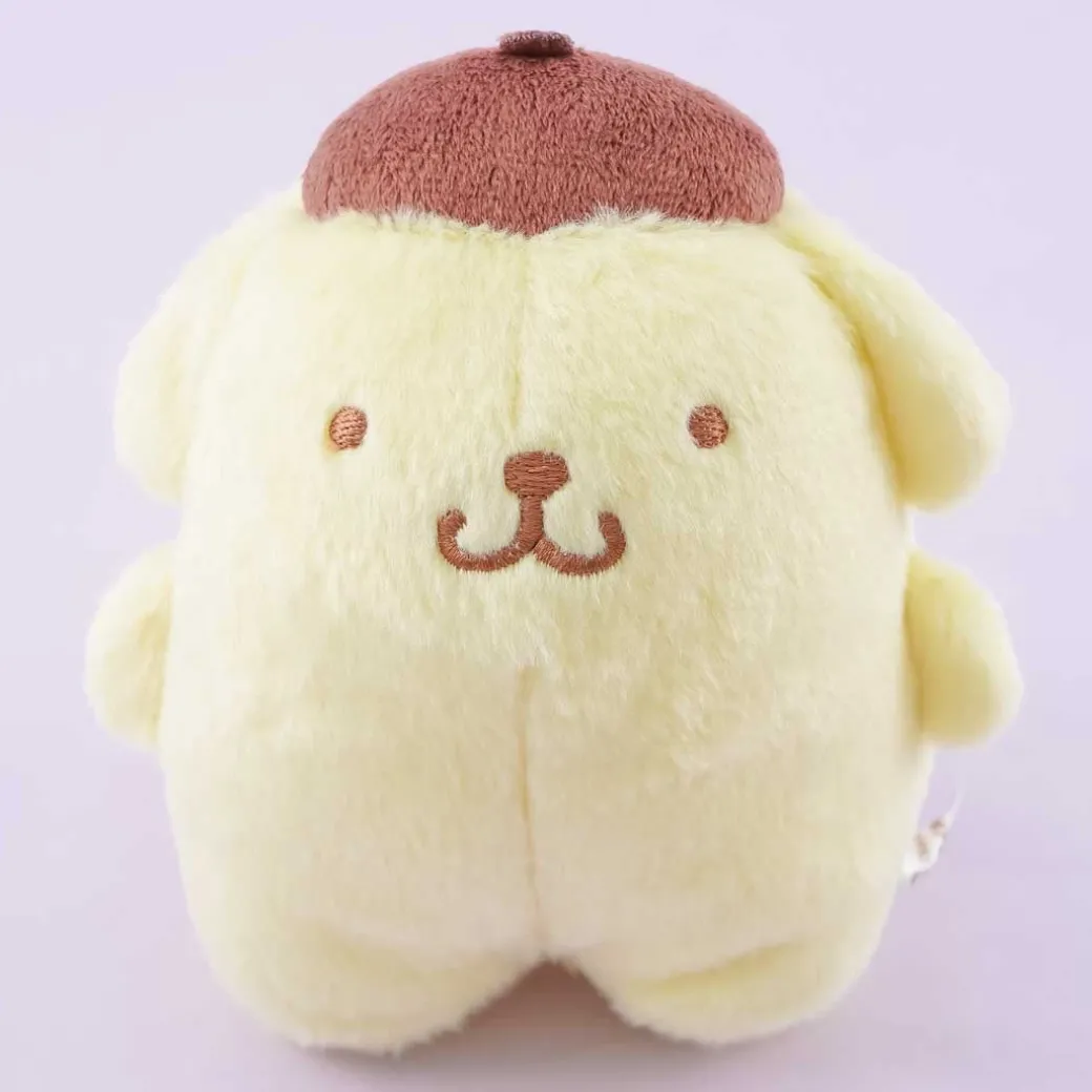 - A cute medium Pompompurin plushie with a round belly and plump legs
