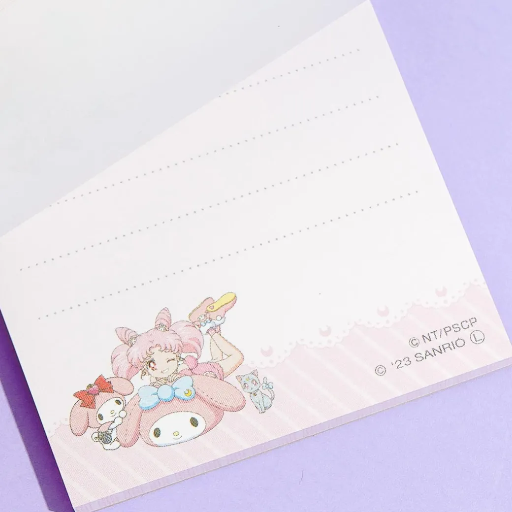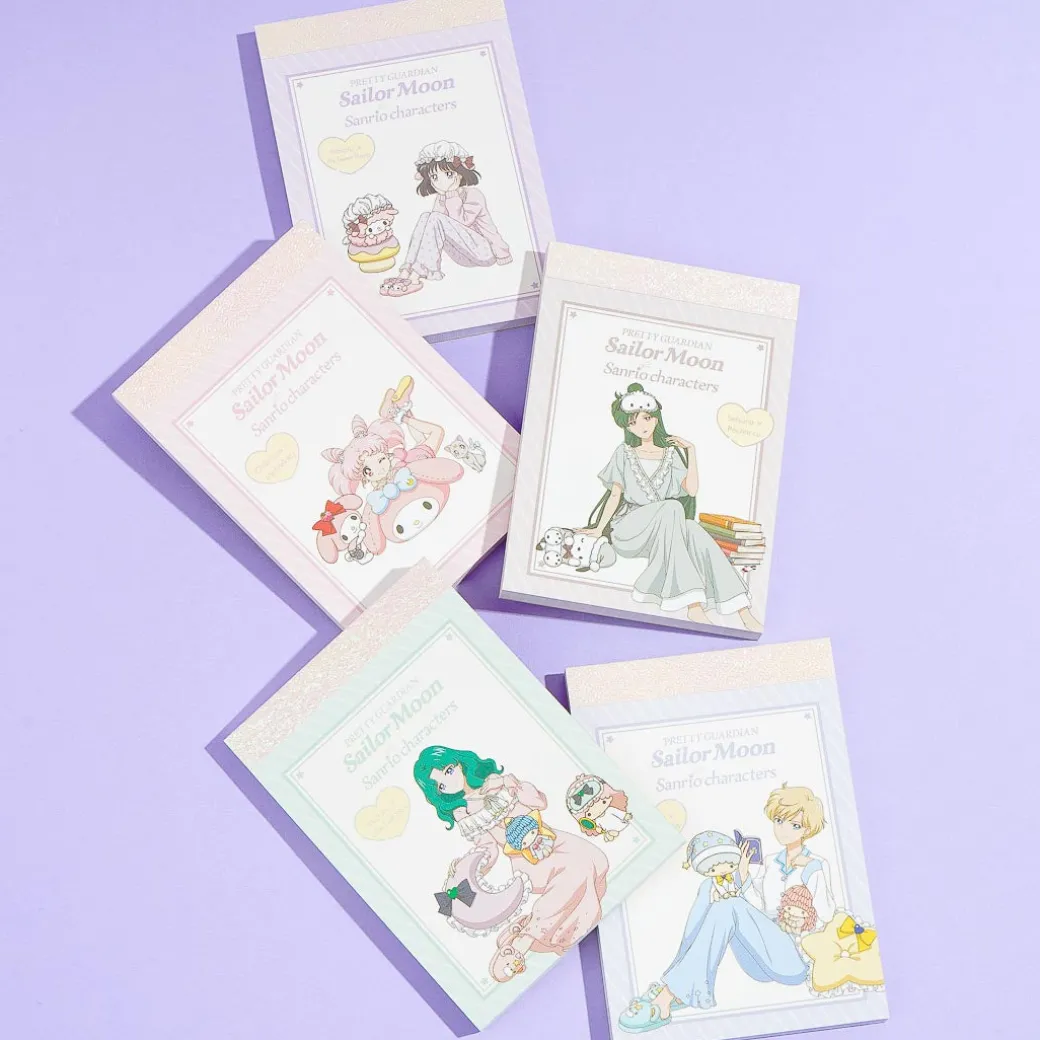 Add this set of kawaii notepads to your stationery collection or share it with your friends! Each memo pad features cute illustrations of Sailor Moon and Sanrio Characters having a pajama party.