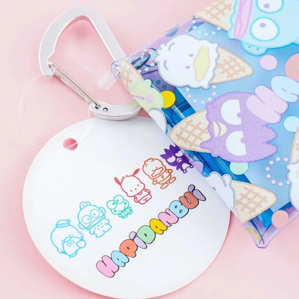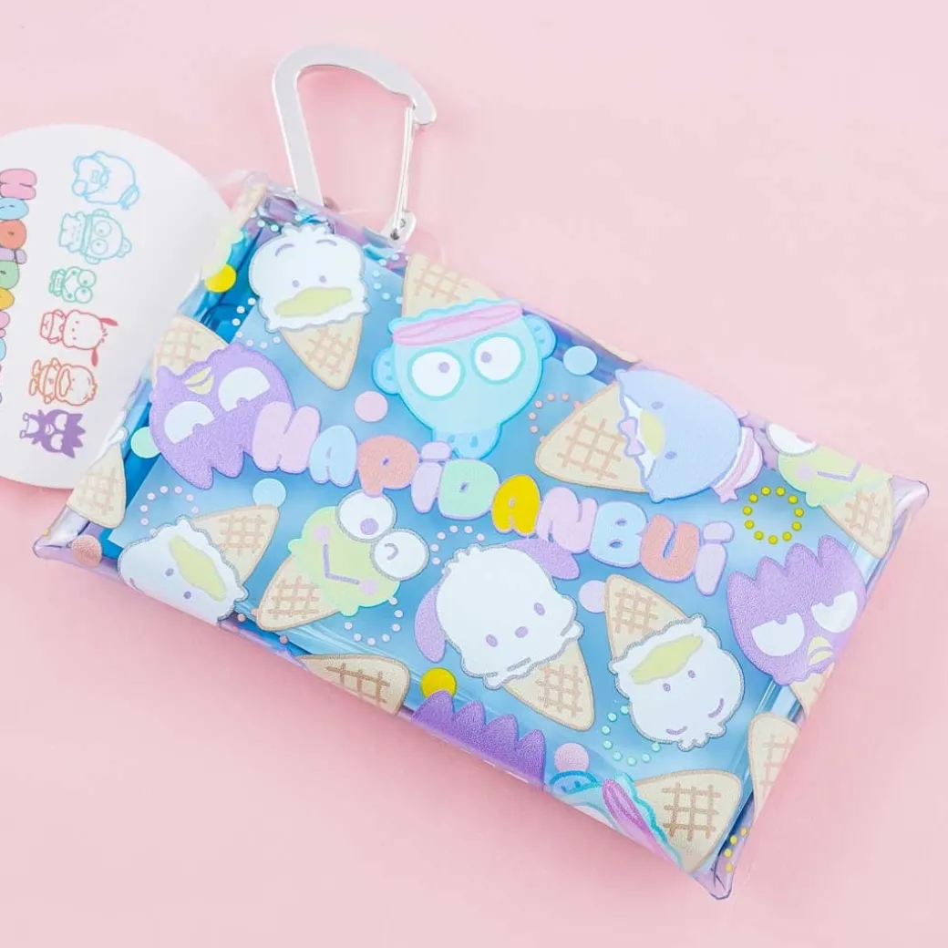 - A super cute clear pouch featuring prints of the Hapidanbui characters shaped like cones of ice cream