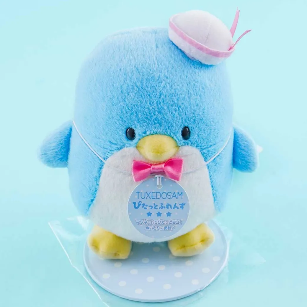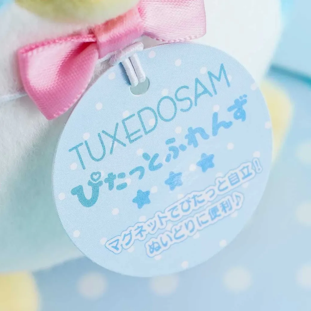 - A medium-sized Tuxedosam plushie with magnets inside its feet so it can stand on the base