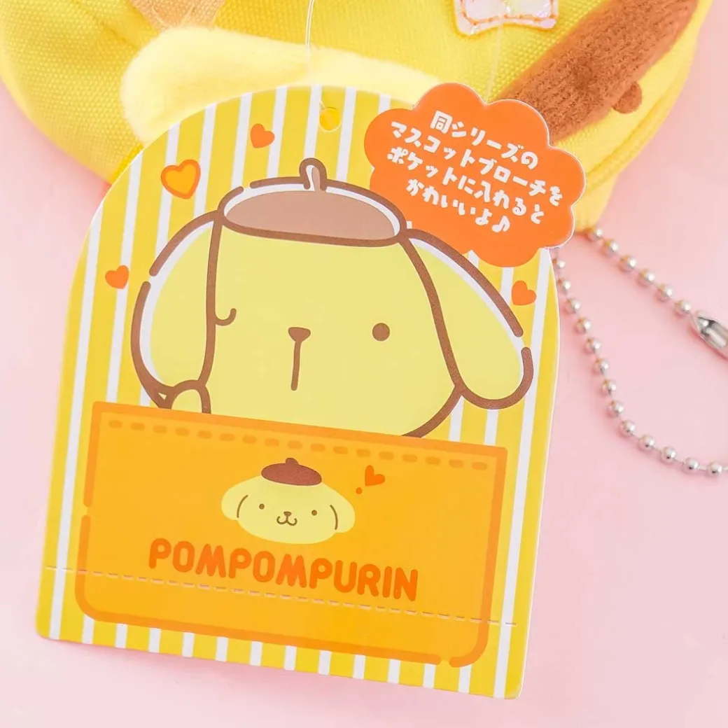 - A super kawaii zippered pouch that resembles a mini backpack featuring Pompompurin that doubles as a charm