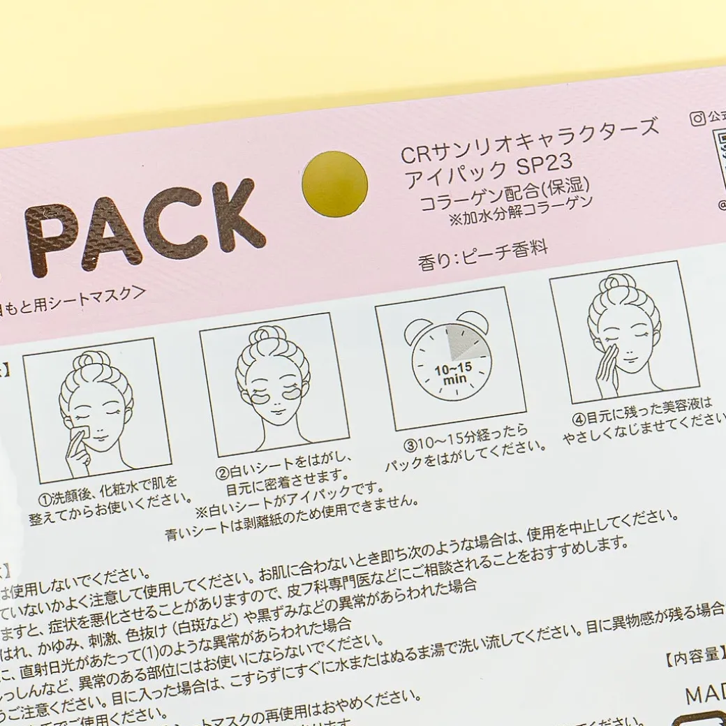 Relax your tired eyes by using this moisturizing pack! Just place the fragrant sheets delicately on the under-eye area and let it sit for 10 to 15 minutes. The kawaii packaging features Kuromi, Cinnamoroll, and Tuxedosam having a sleepover!