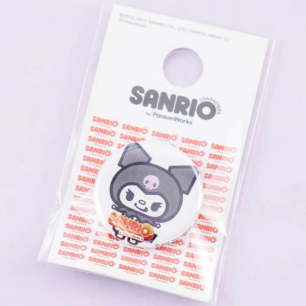 - A kawaii pin with a pop-art illustration of Kuromi
