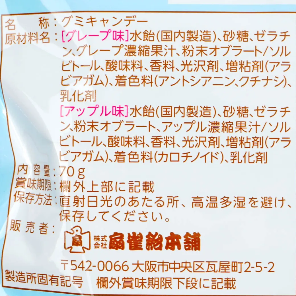 Have fun munching on these tiny, paw-shaped gummy candies! There are two flavors in this pack: apple and grape. These gummies come in a resealable pouch so you can keep them fresh!